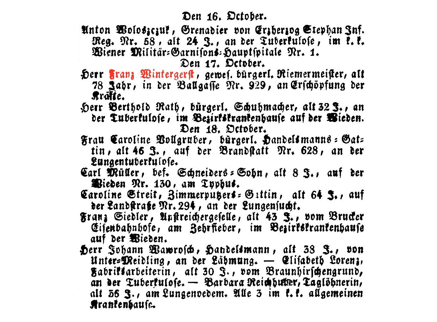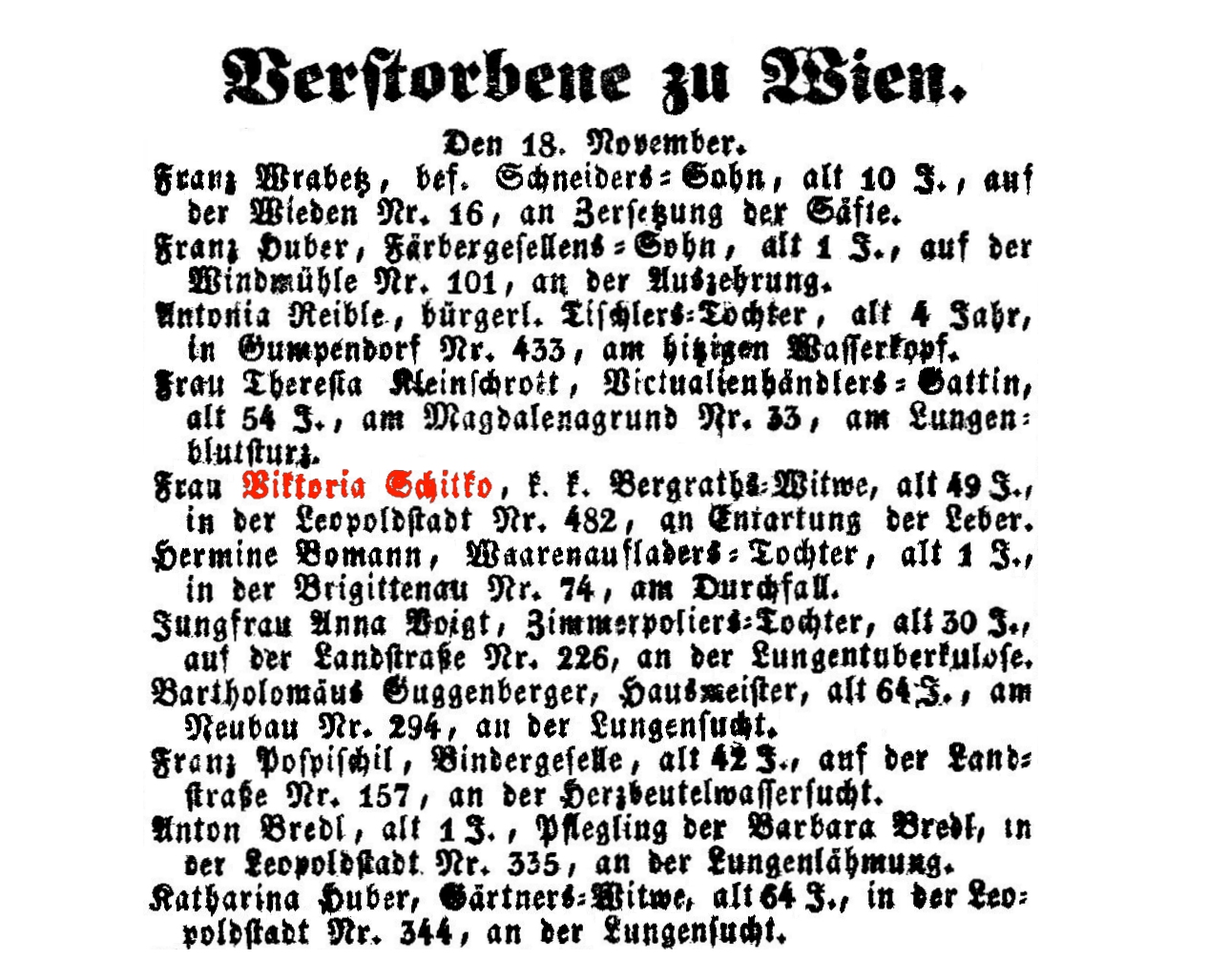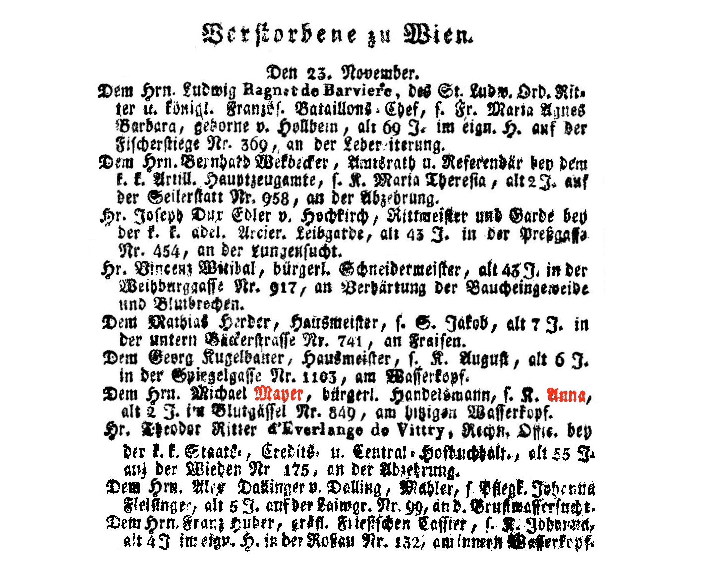 Stephansplatz 628, 16.11.1792-25.11.1859, Typhus.