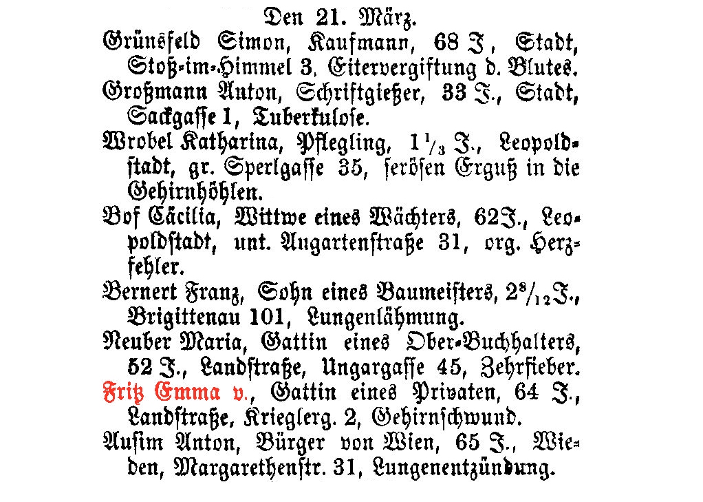 † 21.03.1871, 64 Jahre, Landstraße, Krieglergasse 2.