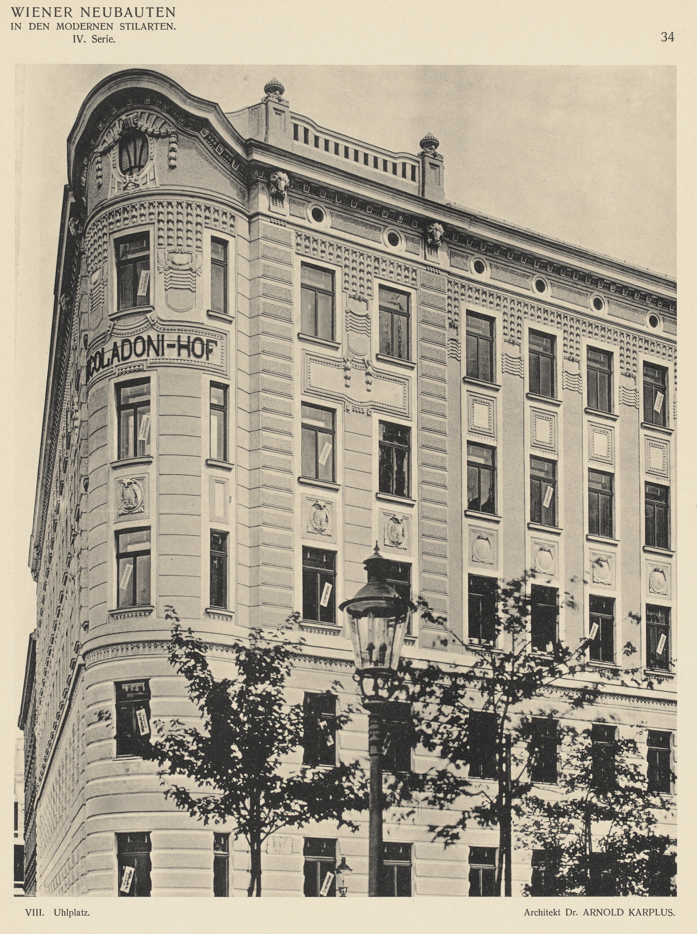 Der Nicoladoni-Hof befindet sich am Hernalser Gürtel 2 (Uhlplatz 4) im 8. Wiener Gemeindebezirk Josefstadt und wurde 1908 vom österreichischen Architekten Arnold Karplus erbaut. Die Fassade wurde später vereinfacht, die Verzierungen ganz weggelassen, an der Ecke zum Gürtel hin ein Balkon geschaffen. Gleich nebenan befindet sich die Breitenfelder Kirche.