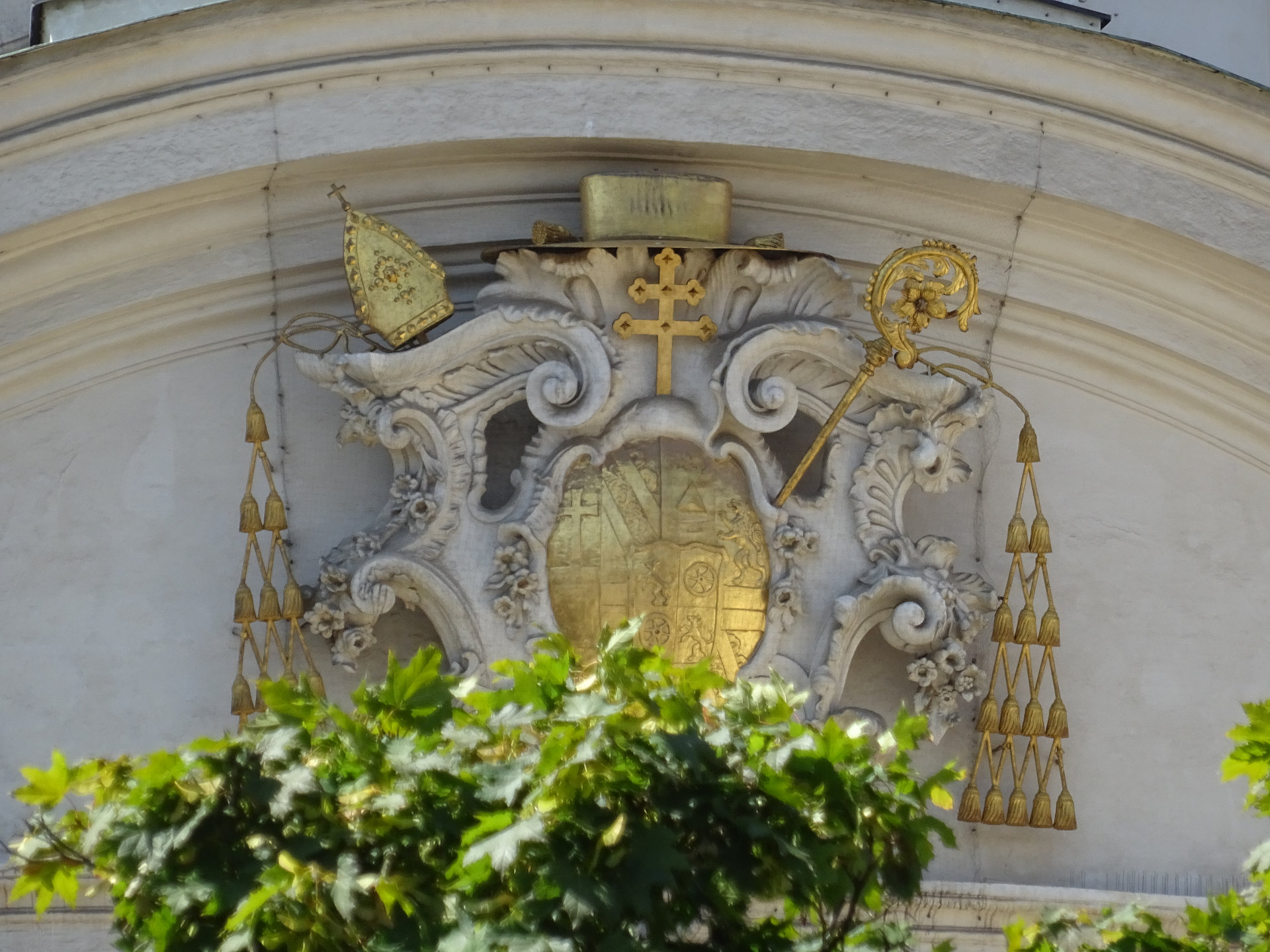 Beschreibung: Die Kirche bildet den Mittelpunkt des Platzensembles; den linken Flügelbau des ansehnlichen Platzes bildet das Piaristenkolleg, den rechten das Löwenburgkonvikt und in der Mitte steht die 1713 gestiftete