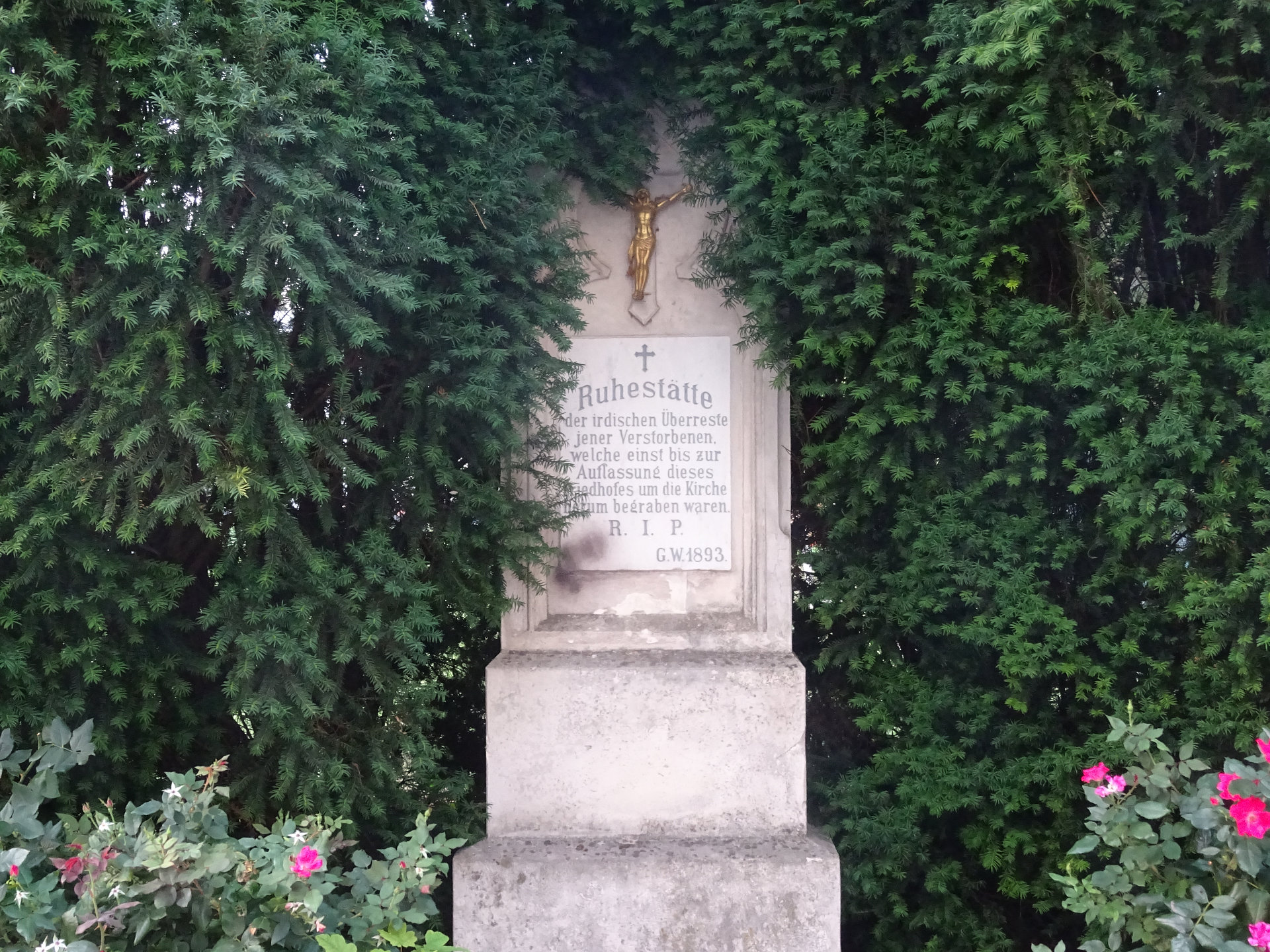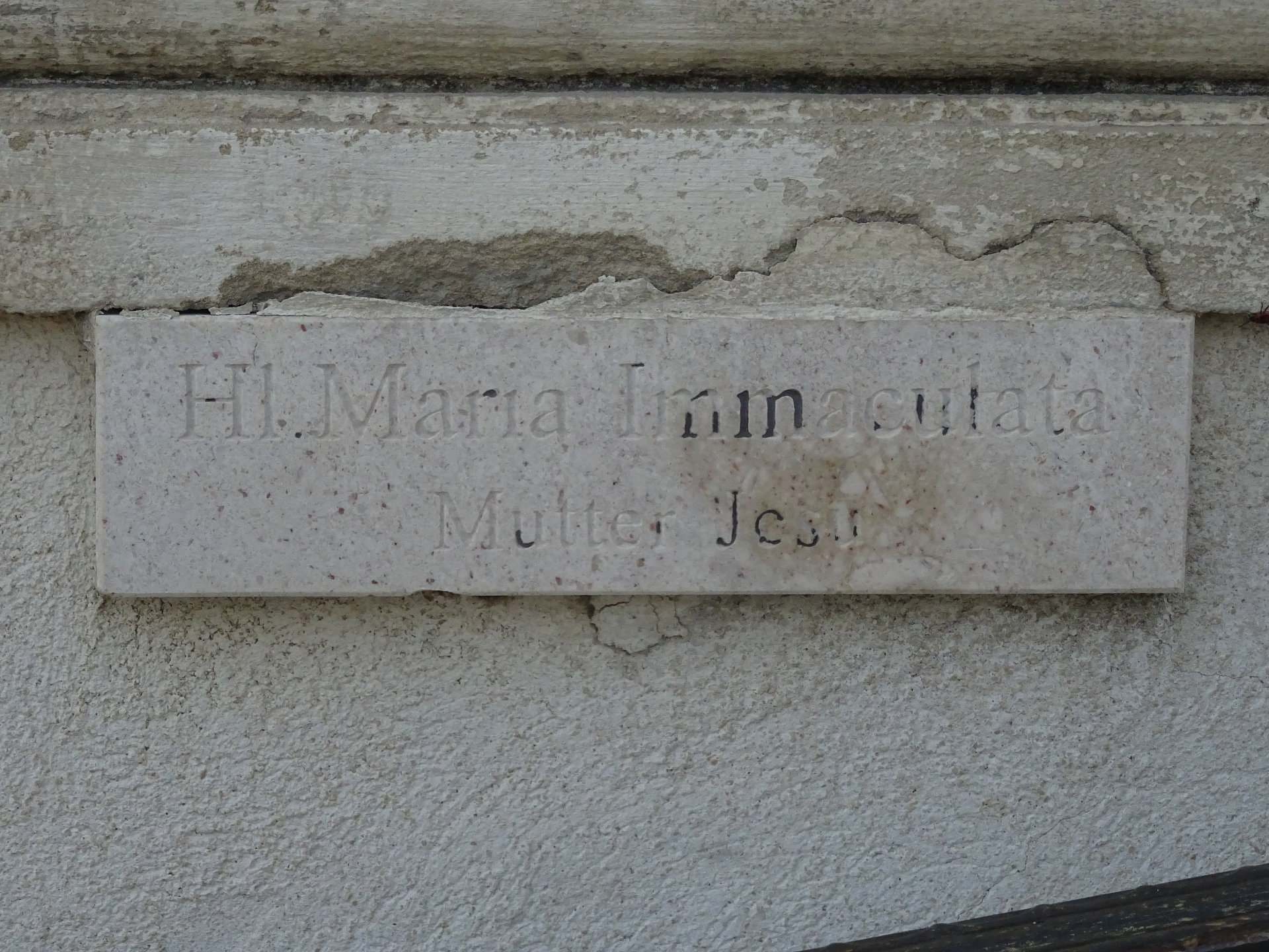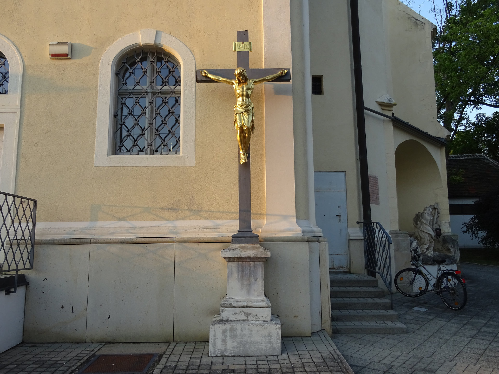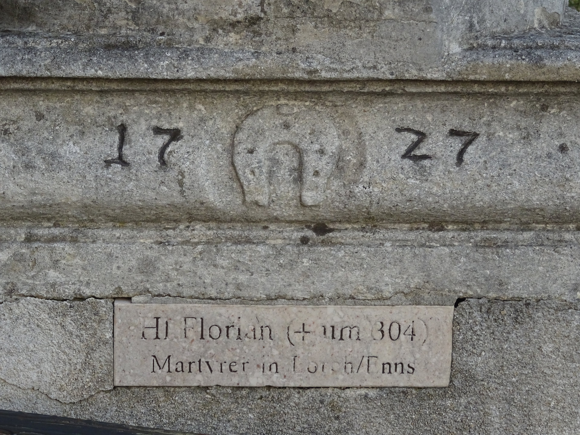 Am Treppenaufgang zur Kirche stehen sechs barocke Steinfiguren von 1727. Sie stellen den heiligen Josef, die heilige Maria Immaculata, den heiligen Leopold, den heiligen Karl Borromäus, den heiligen Johannes Nepomuk und den heiligen Florian dar.