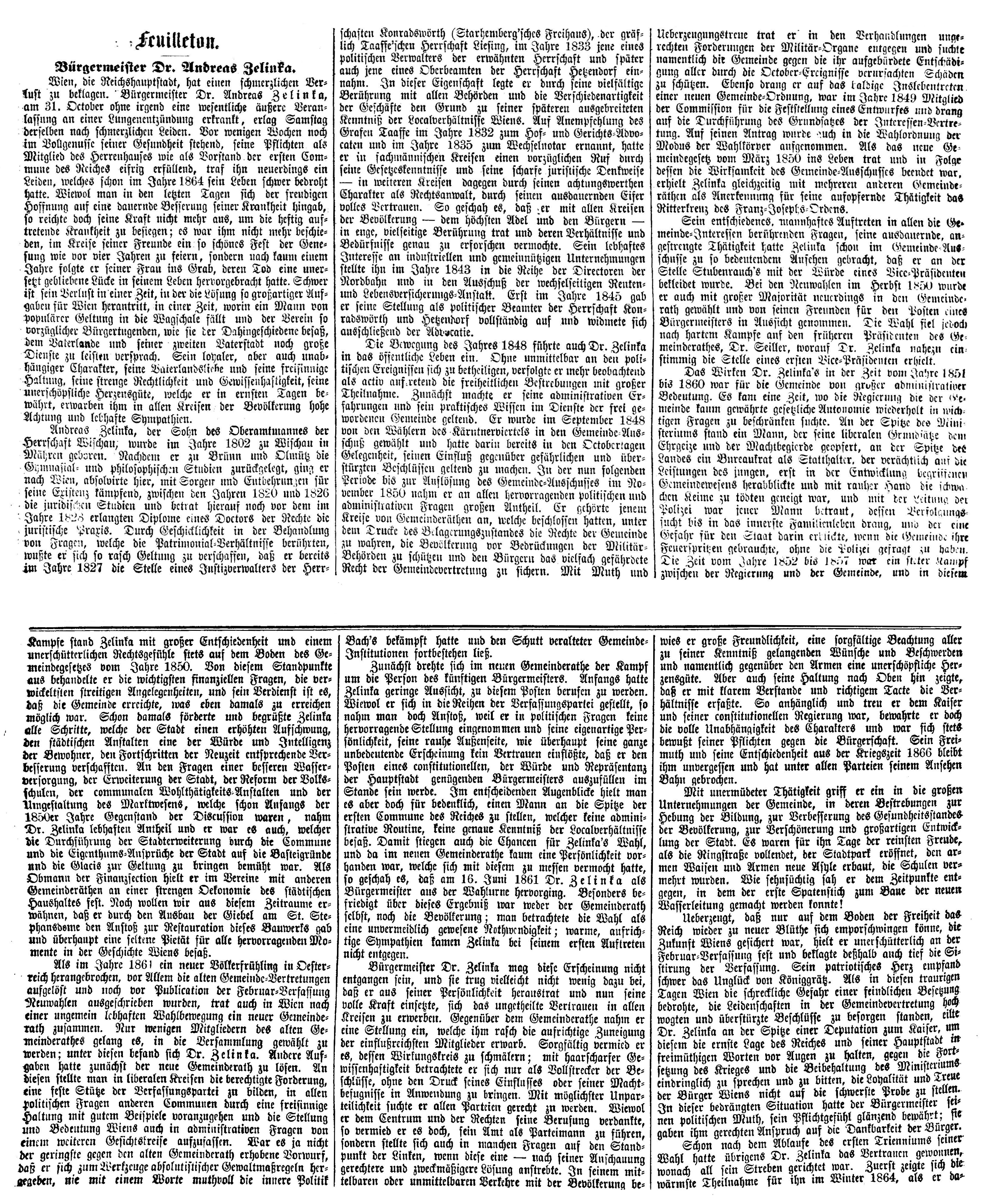 Neue Freie Presse vom 23.11.1868, Seite 1 und 2: