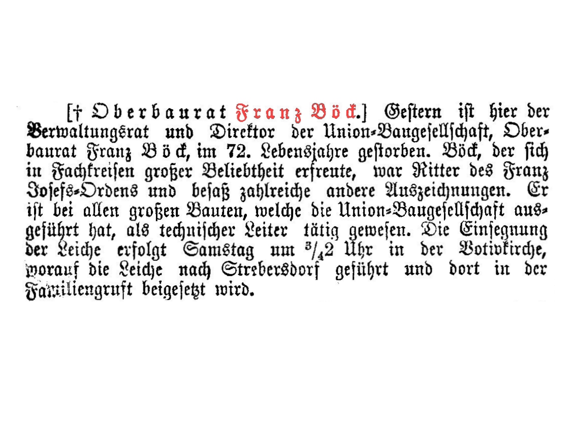 Anton Böck, k. k. Baurath, Director und Verwaltungsrath der Union-Baugesellschaft