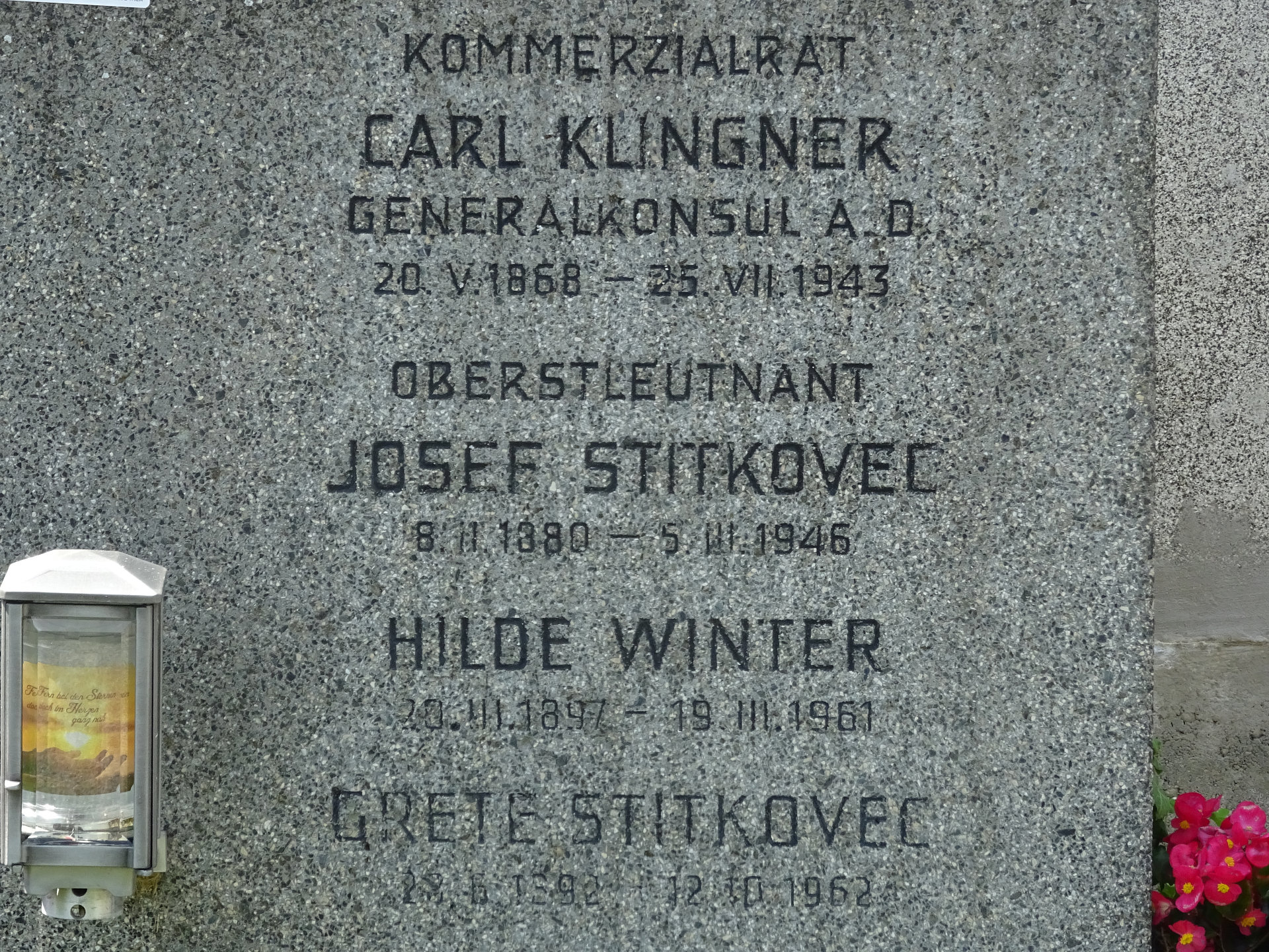 Carl Klingner, Kommerzialrat, Generalkonsul und Generaldirektor a. D., * 20.05.1868, † 25.07.1943, Bestattungsdatum: 29.07.1943,