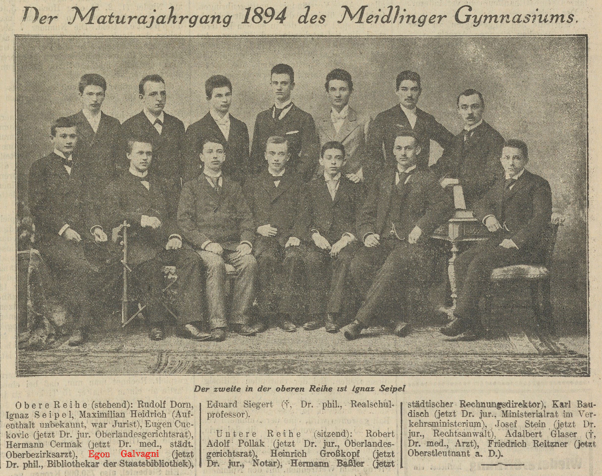 Egon Galvagni, Dr. phil., Oberstaatsbibliothekar in Ruhe, Korrespodent des Naturhistorischen Museums Wien, * 07.06.1874, † 24.03.1955, Bestattungsdatum: 28.03.1955