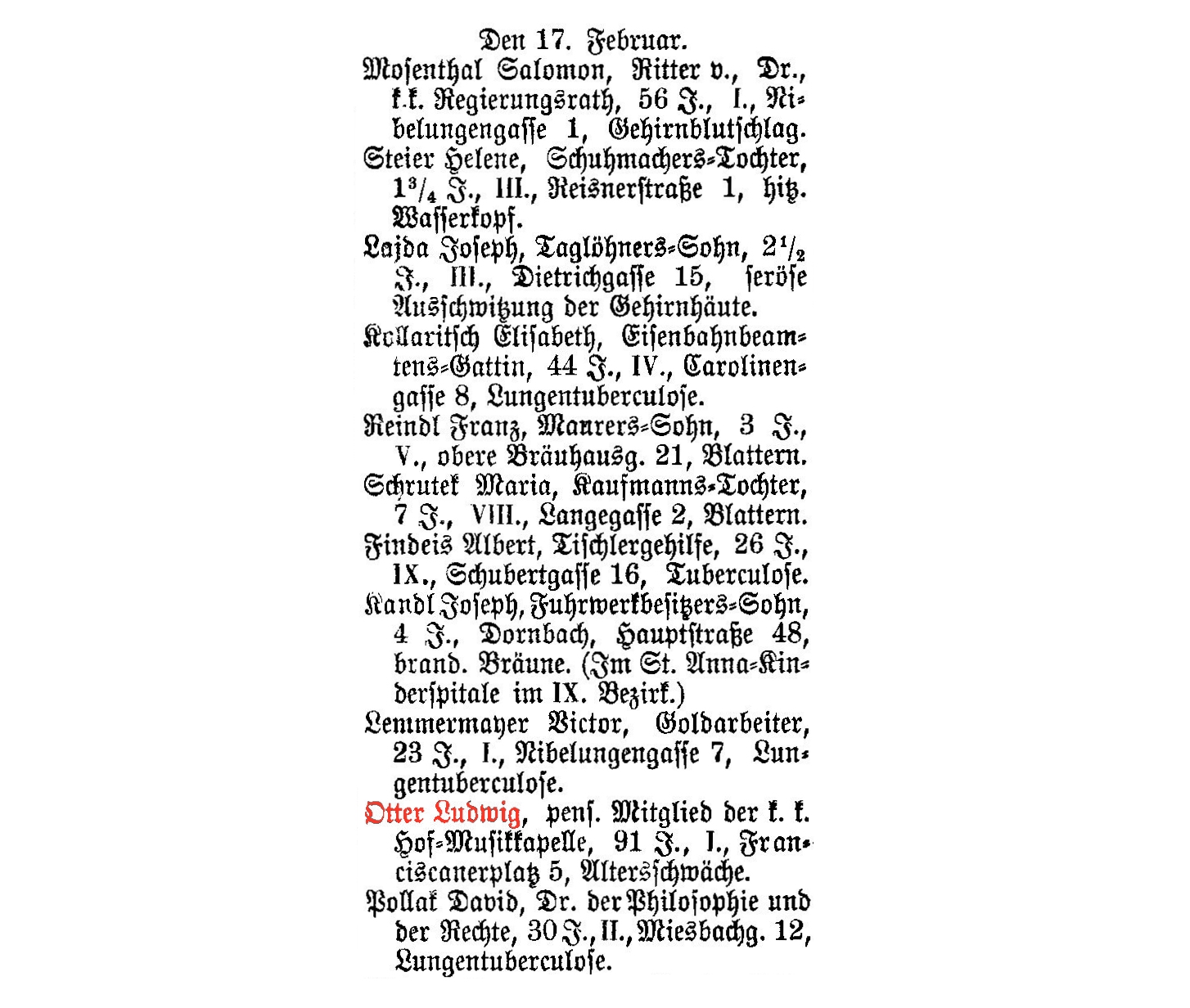 Hof-Musikkapelle, 91 J., I., Franciscanerplatz 5, Altersschwäche.