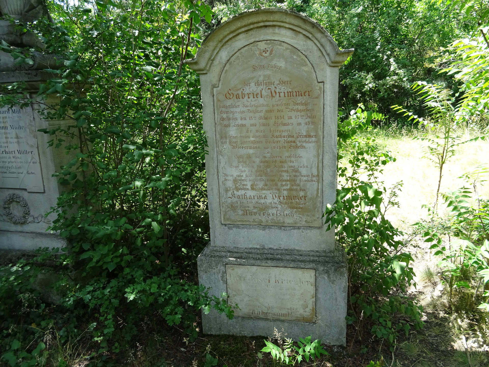 Gabriel Primmer, bürgerl. Küchengärtner und Hausinhaber, Vorsteher und Grundgerichts-Beysitzer unter den Weißgärbern, † 13.10.1834 im 67. LJ.
