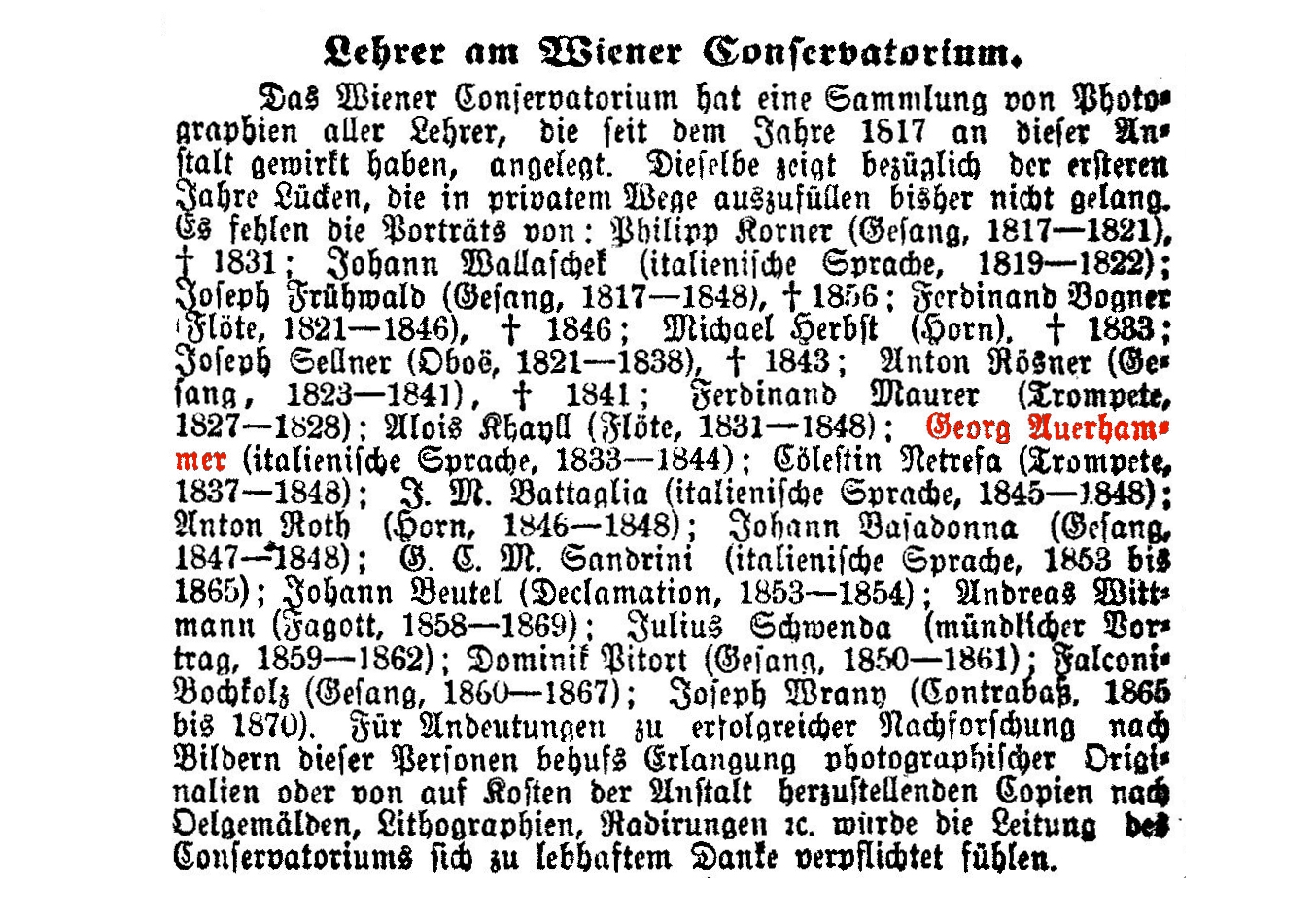 (Gesang, 1860—1867); Joseph Wrany (Contrabaß. 1865
