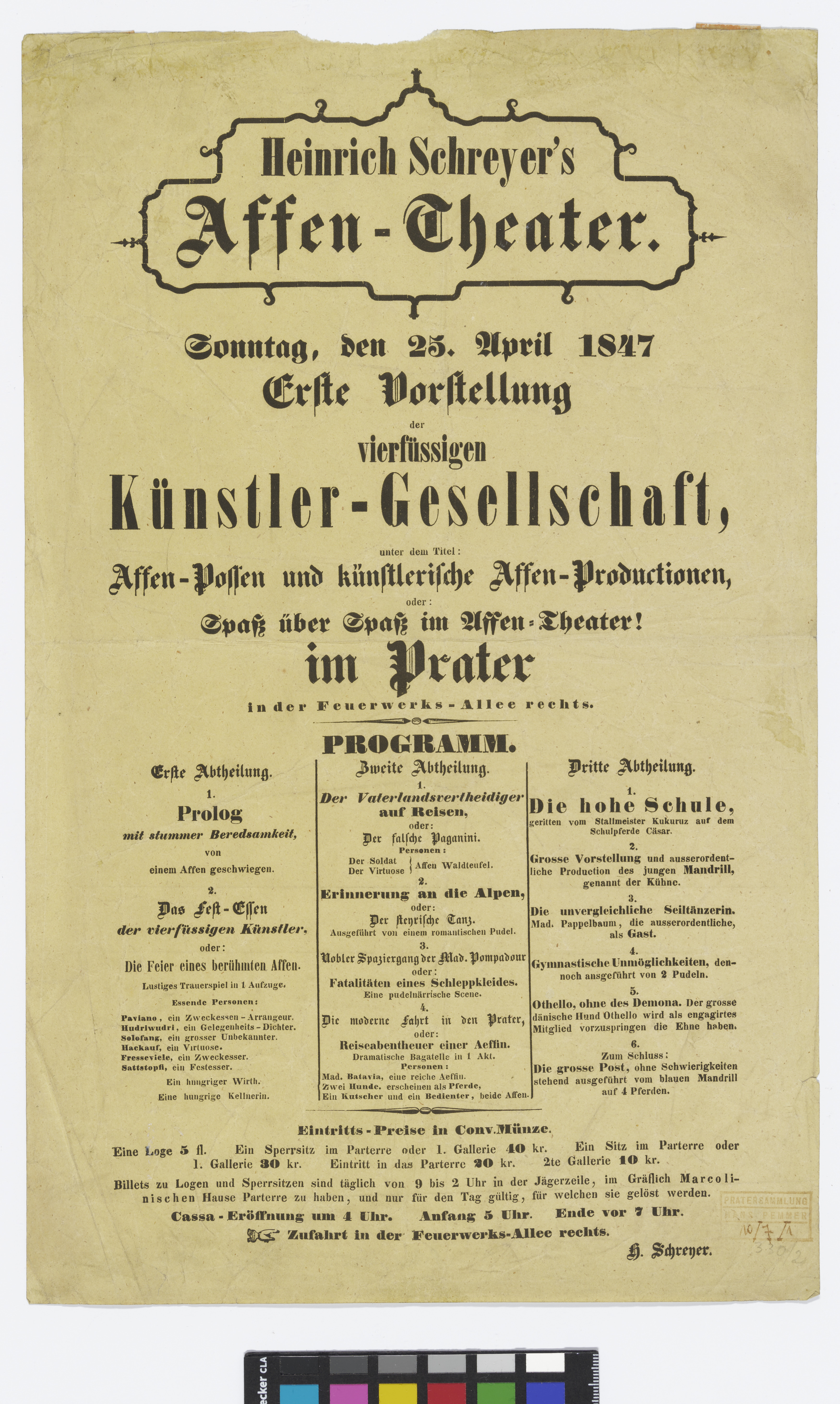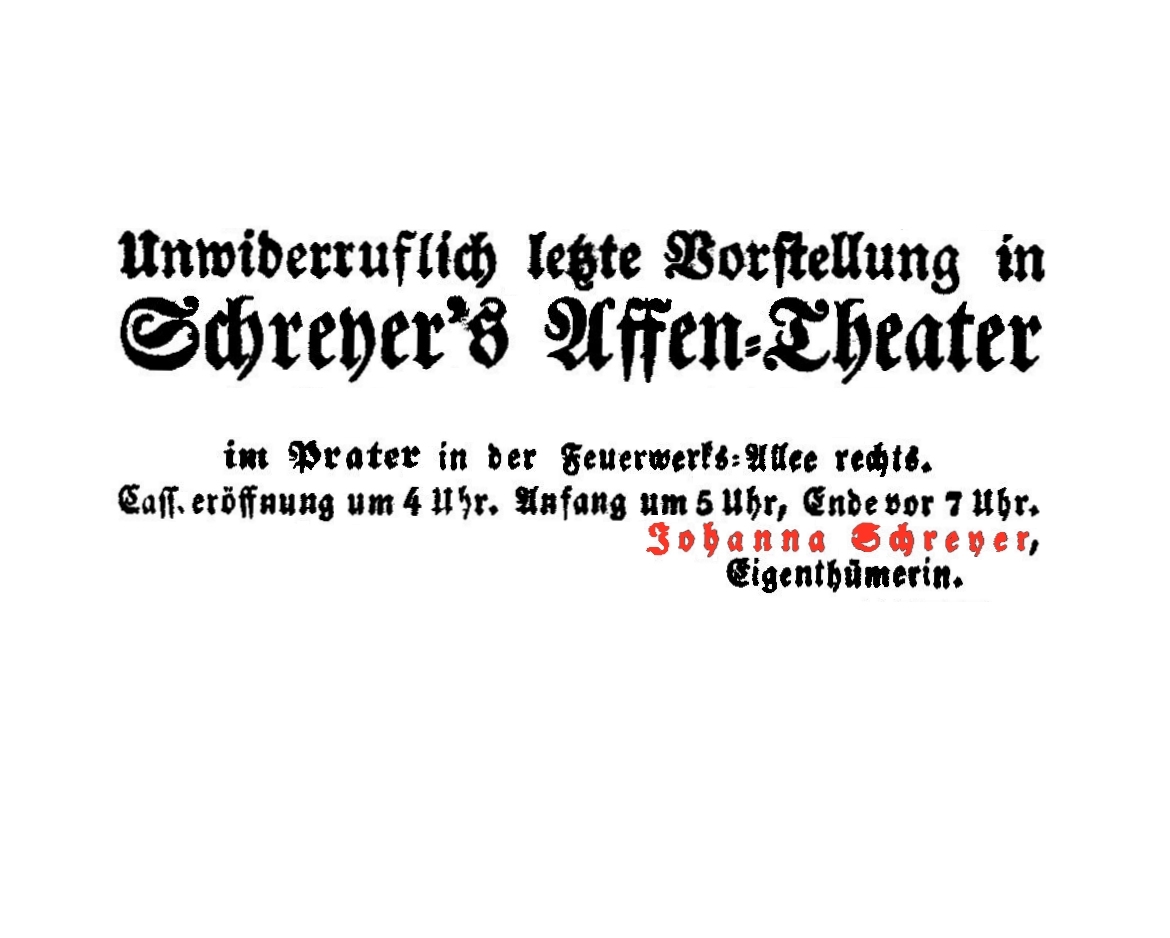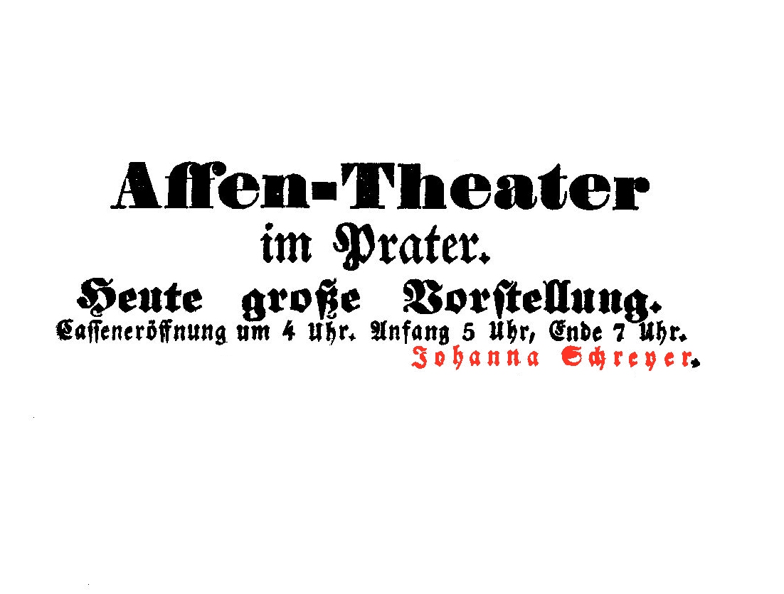 Unbekannt, "Heinrich Schreyer's/Affen-Theater", 1847, Wien Museum Inv.-Nr. 174758, CC0 (https://sammlung.wienmuseum.at/objekt/345881/),