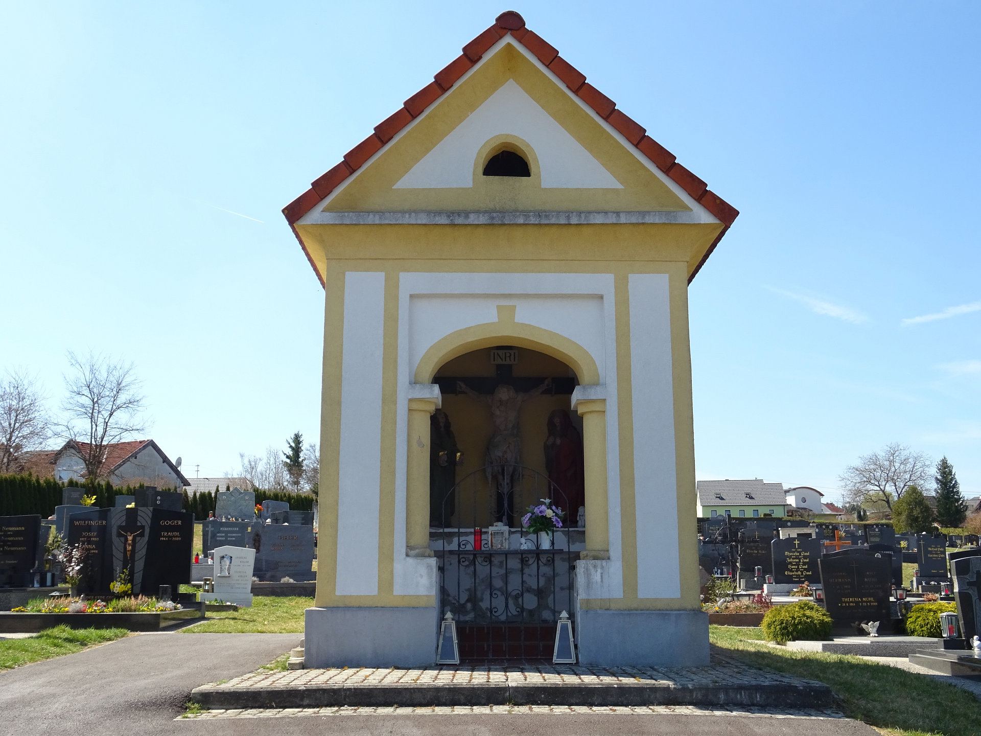 Die Friedhofskapelle befiindet sich mitten am Friedhof in Kemeten.