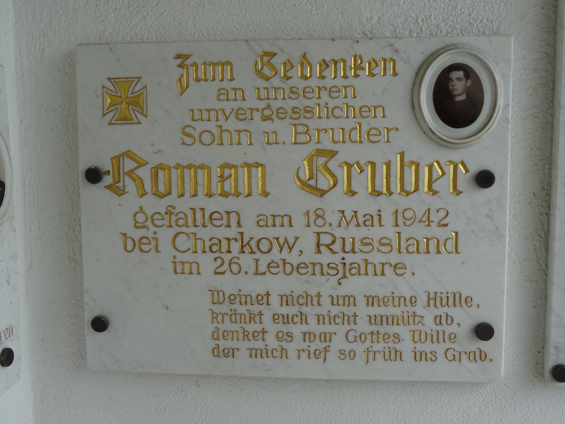 GRUBER Roman, † 18.05.1942 im 26. Lebensjahr, bei Charkow, Russland