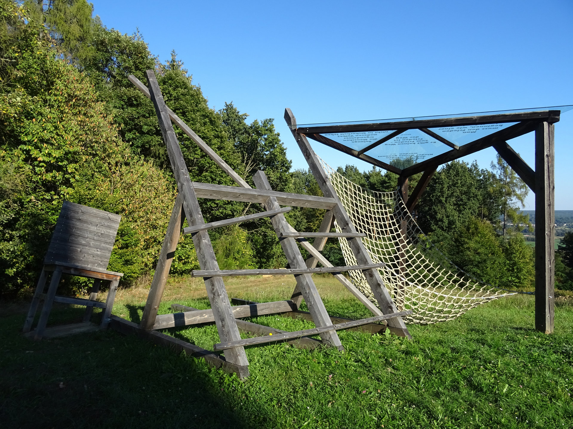 Die Station "Über die Grenzen" bietet einen freien Blick zu den ungarischen Ortschaften Windischdorf (Rábatótfalu) und Unterzemming (Alsószölnök).