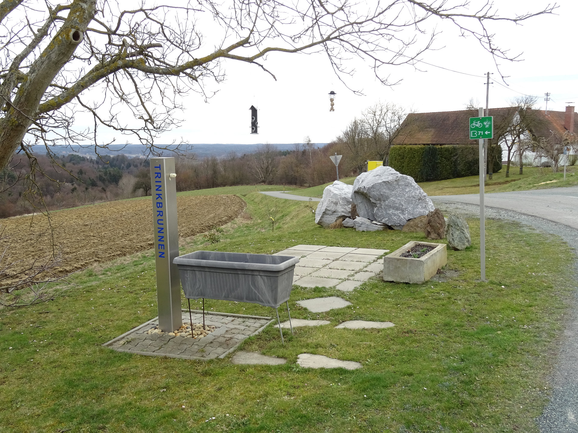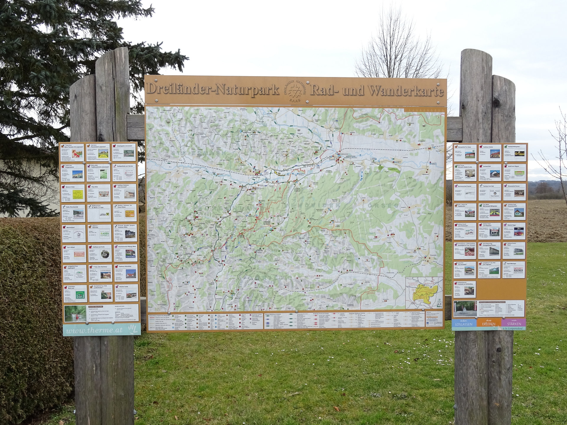 Ausgangspunkt ist Rax-Dorf, Abzweigung nach Krobotek und Rax-Bergen. Dieser Wanderweg wird laut späteren Markierungen gegen den Uhrzeigersinn begangen! Man wandert von der Abzweigung nach Krobotek und Rax-Bergen die Hauptstraße Richtung Osten, am Kriegerdenkmal und am Feuerwehrhaus vorbei. Neben dem Feuerwehrhaus befindet sich eine Übersichtstafel über die (sportlichen) Aktivitäten in der näheren Umgebung. Knapp am Ortsende von Rax geht es links weg Richtung Rax-Bergen. Bei der Gabelung nach ca. 400 Meter wandert man NICHT Richtung Rax-Bergen, sondern nimmt die rechte Abzweigung (Am Waldrand). An einigen Häusern vorbei, bis man zu einer Forststraße kommt. Nach 300 Meter erkennt man rechts den Hotterbach, welcher in Maria Bild entspringt und bei Weichselbaum in die Raab mündet. Dann beginnt ein leichter Anstieg duch den Wald bis man zu einer Weggabelung kommt, bei diesem rechts abbiegen (Wechsel Schotter- auf Asphaltstraße). Weiter bergauf bis zu einer Kreuzung bei einem Trinkwasserbrunnen, bei diesem geht man ebenfalls rechts weiter. Weiter durch Rax-Bergen, danach kommt man zur Kreuzung nach Maria Bild (Wallfahrtskirche Maria Bild). Ca. 50 Meter abseits des Wanderweges befindet sich die Kapelle der Rosenkranzkönigin (Königin des heiligen Rosenkranzes) und das integrierte Kriegerdenkmal. An der Kreuzung unmittelbar nach dem Feuerwehrhaus und der alten Presse biegt man links ab, vorbei am Trinkwasserbehälter, an einigen Häusern vorbei, durch mehrere kleine Waldgebiete, am Raxbach (liegt auf der rechten Seite) vorbei, bis man schließlich zu den Hügelgräbern aus der Römerzeit (Gebiet "Birich") kommt. Hier kann man einige Zeit damit verbringen, alle Gräber zu besichtigen. Der antike Friedhof stammt aus dem 1. und 2. Jahrhundert, und wurde 1873 entdeckt. Am Wasserbehälter vorbei, den Weg wieder nach Rax-Dorf, an der Thermenlandklinik vorbei, ist man wieder am Ausgangspunkt. Unweit des Ausgangpunktes befindet sich die Kapelle Rax-Dorf, welche im Zuge des Ausbaues der Ortsdurchfahrt im Jahre 1955 versetzt und neu erbaut wurde.