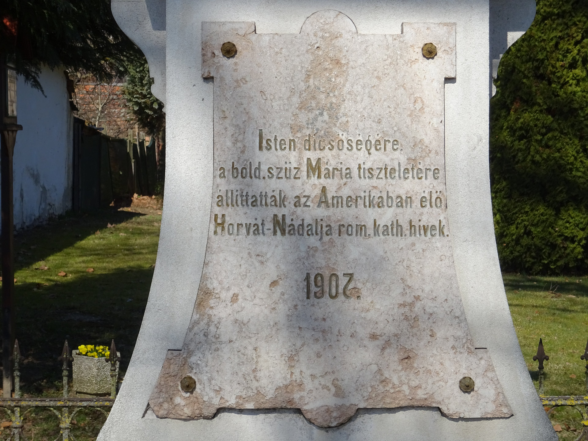 Amerikanerkreuz: Das 1907 erbaute Amerikanerkreuz befindet sich vor der Kirche zum Heiligen Geist, an der Nádaljai utca 24 (Straße 74186), in Körmend-Horvátnádalja.