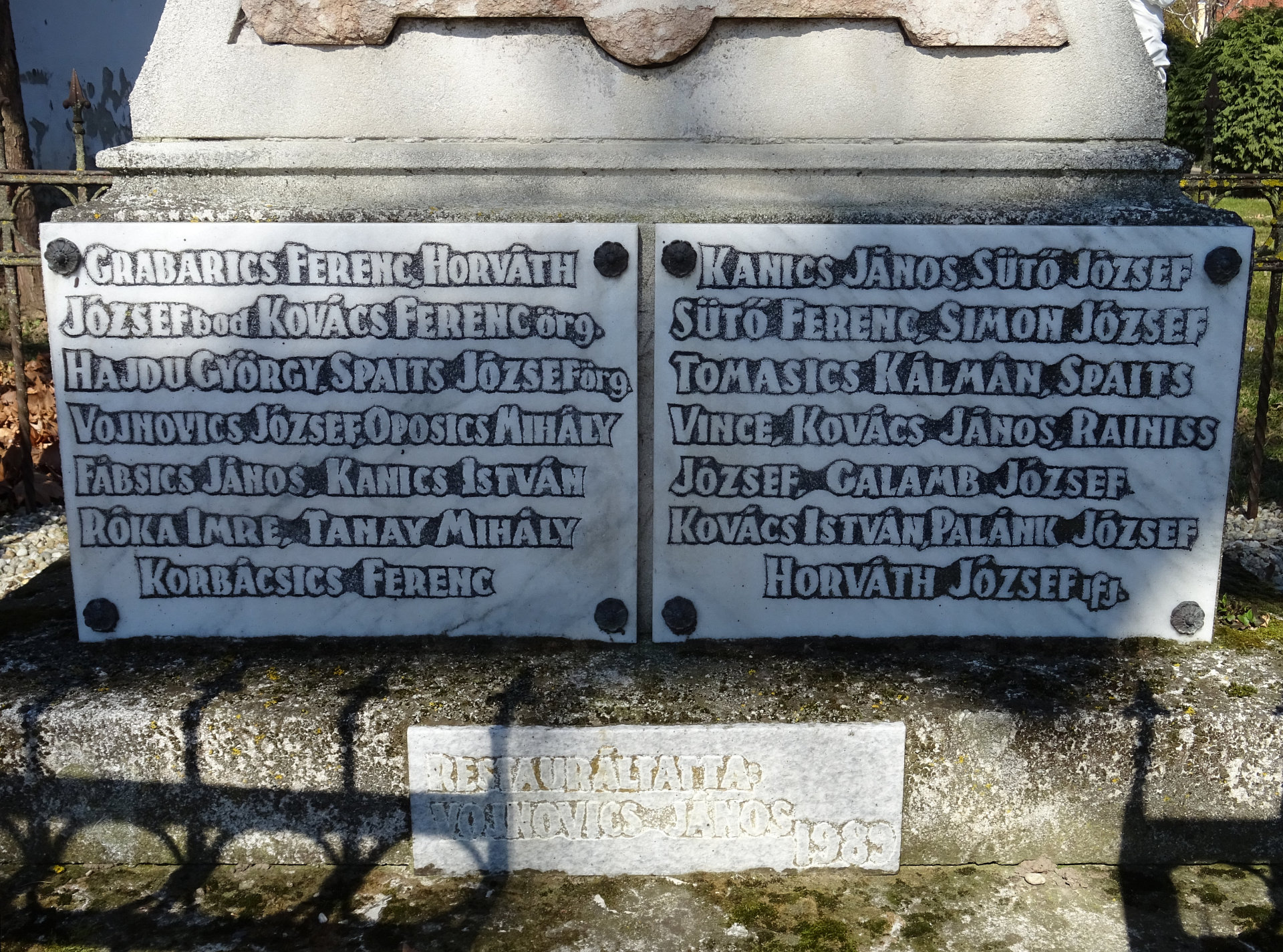 Laut Inschrift wurde das Denkmal 1989 von Vojnovic János restauriert.