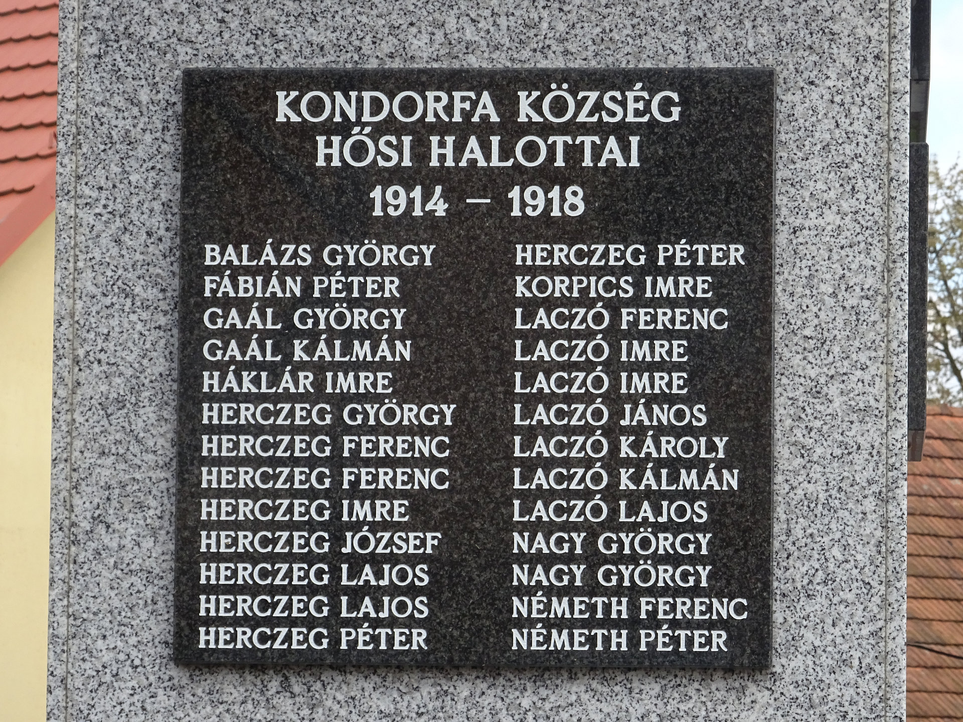 Kondorfa, Kriegerdenkmal 1. WK