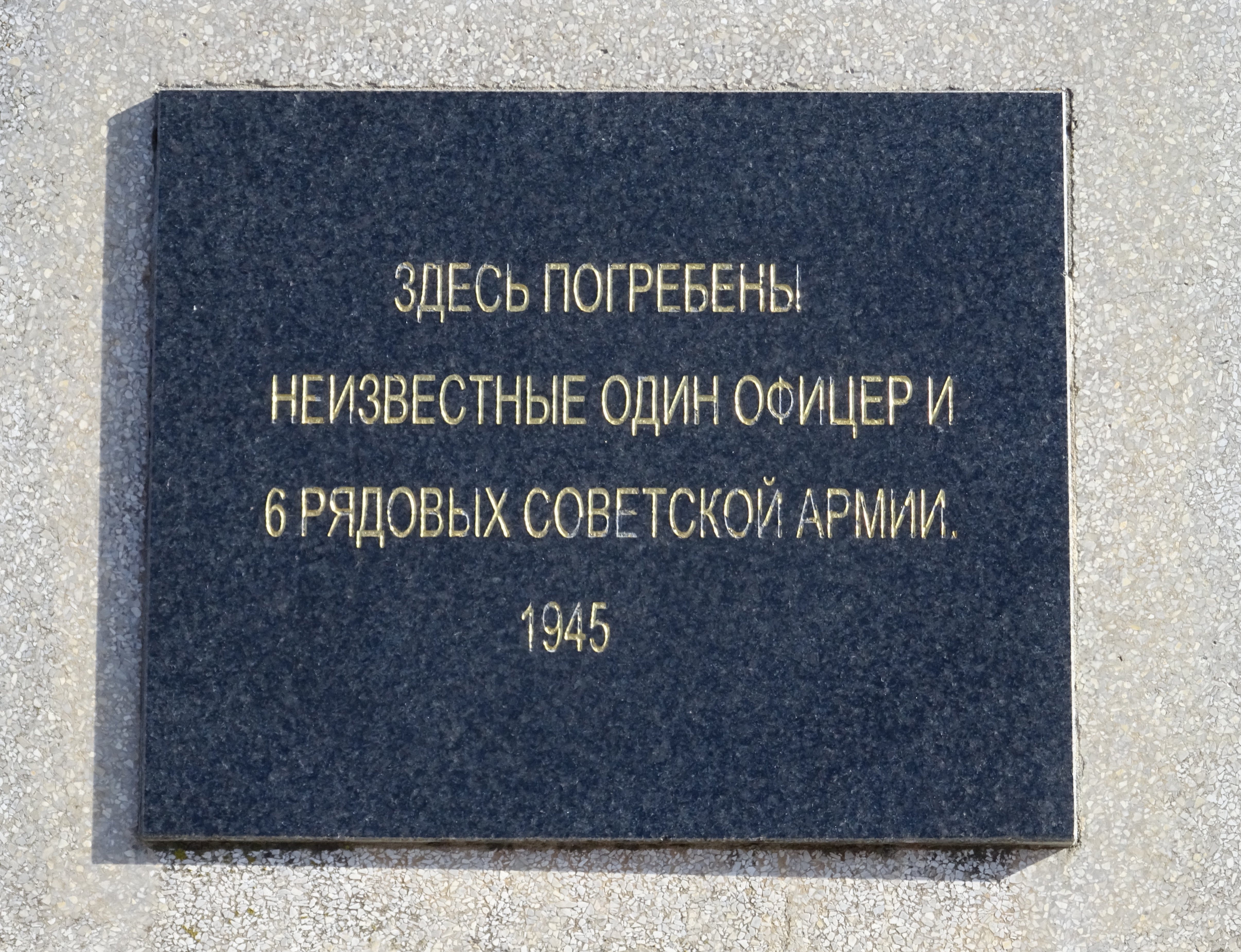 Zusatztafel: Emlékezteto.... A kommunista önkényuralom idején, hortobágyi kényszermunkára hurcolt szentpéterfai családok: (Zur Erinnerung an die Prostrumer Familien die während der kommunistischen Tyrannei zur Zwangsarbeit verschleppt wurden:) (Namen) 2006.