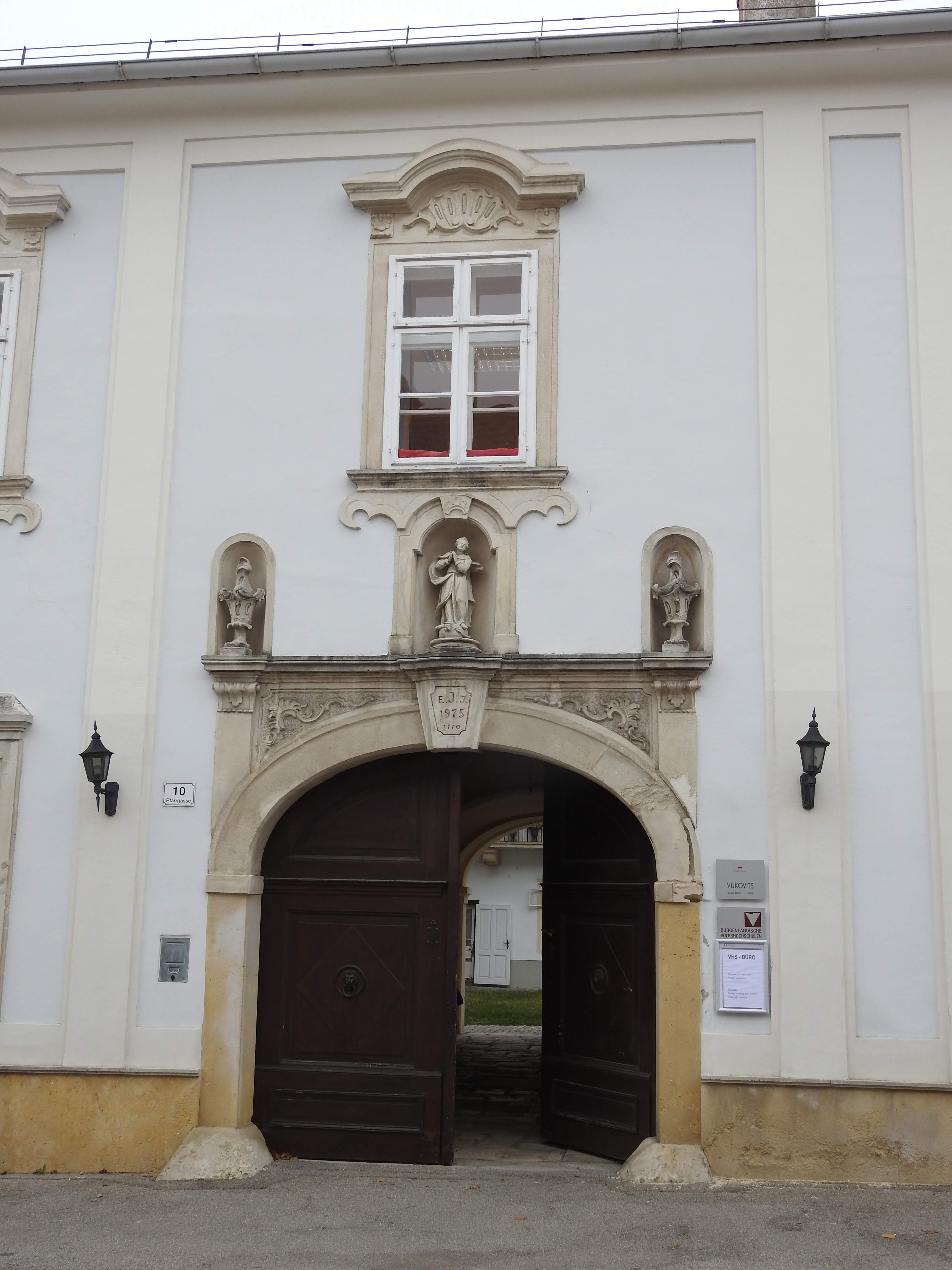 Das Bürgerhaus ist unter der ObjektID: 30118 denkmalgeschützt und befindet sich in der Pfarrgasse 10 in Eisenstadt. Das Bürgerhaus ist ein zweigeschoßiges Haus, dessen Fenster Muscheldekor aufweisen. Über dem Rundbogenportal (bezeichnet mit dem Jahr 1770) befindet sich eine Maria-Steinfigur, die von zwei Rokokovasen flankiert ist.