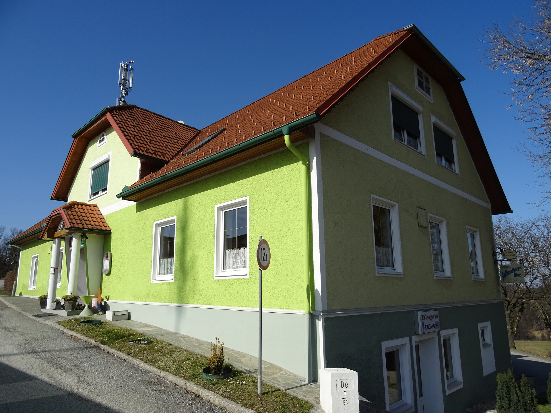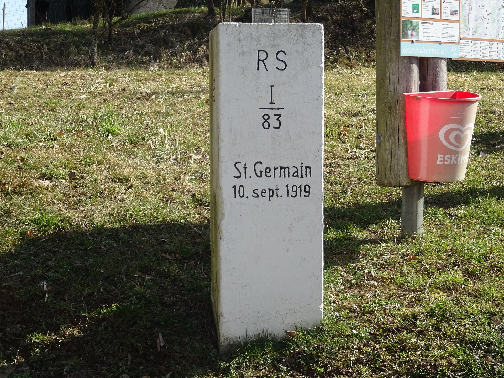 Grenzstein bei der slowenischen Grenze.Bonisdorf, Grenzgasthaus Mertschnigg