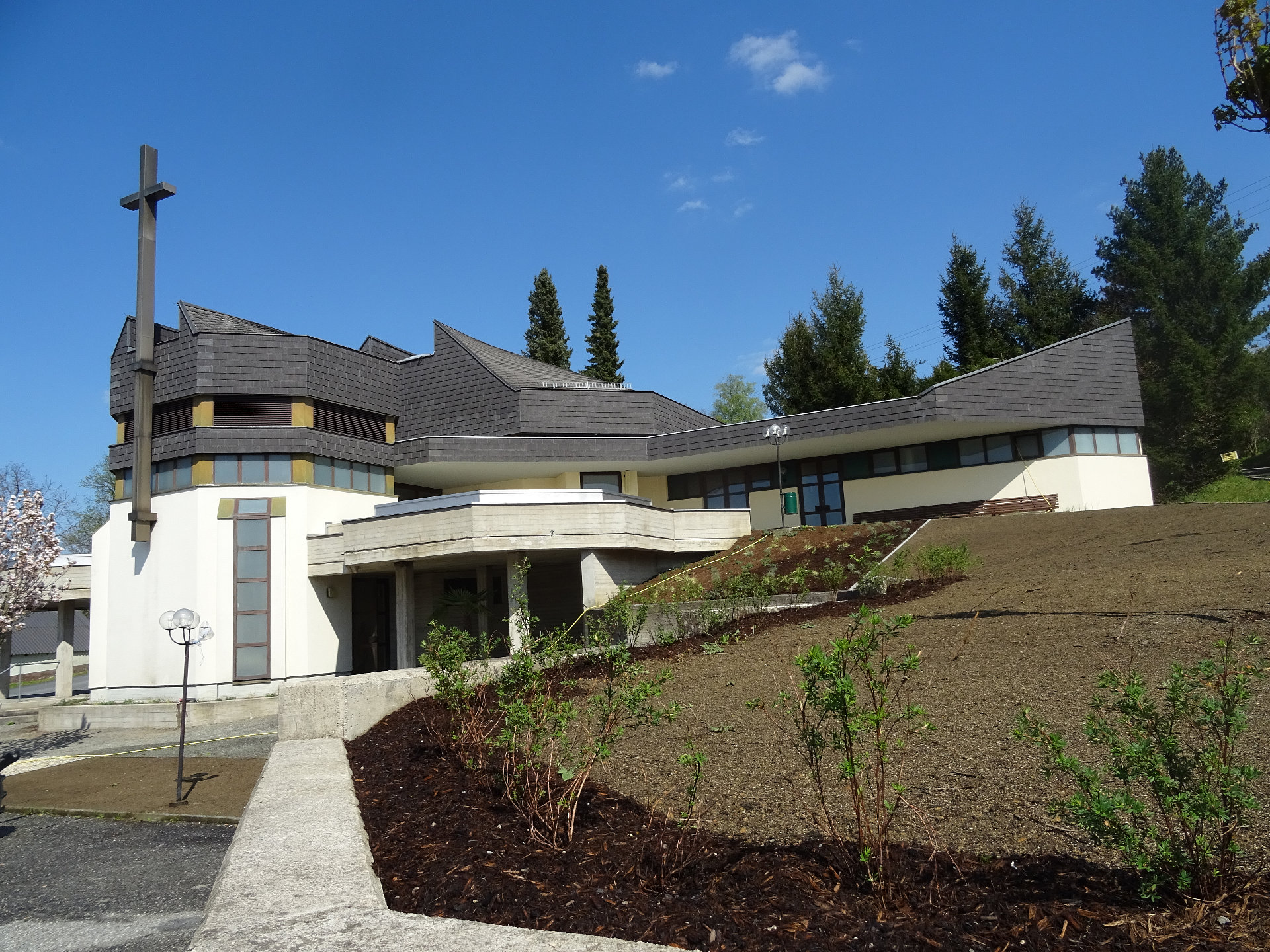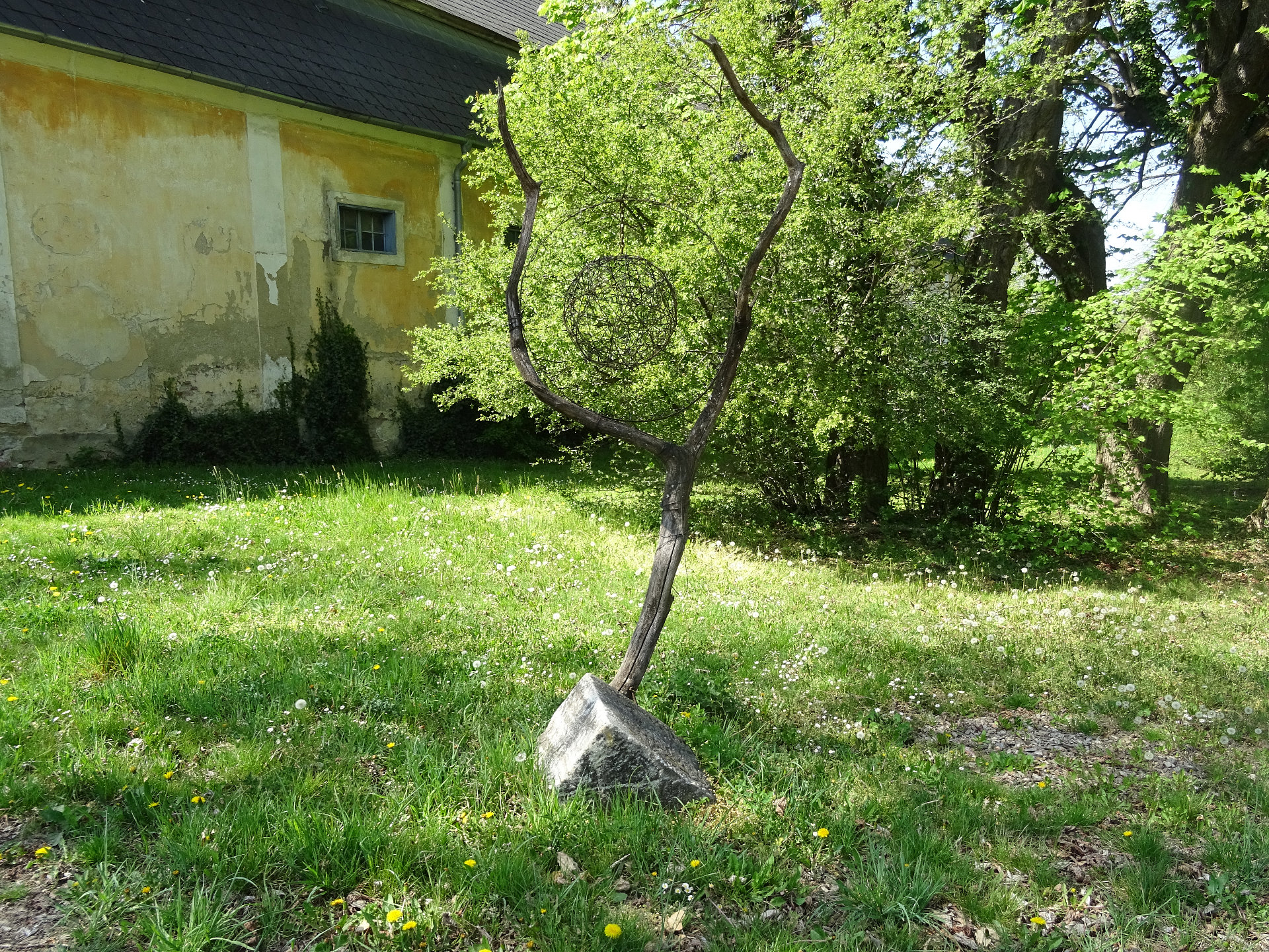 Kriegerdenkmal: Das Soldatendenkmal befindet sich neben der Kirche. Rechteckiges Denkmal auf Bruchsteinsockel, gekrönt mit Steinkreuz in der Mitte Bronze-Lorbeerkranz mit Schwert.