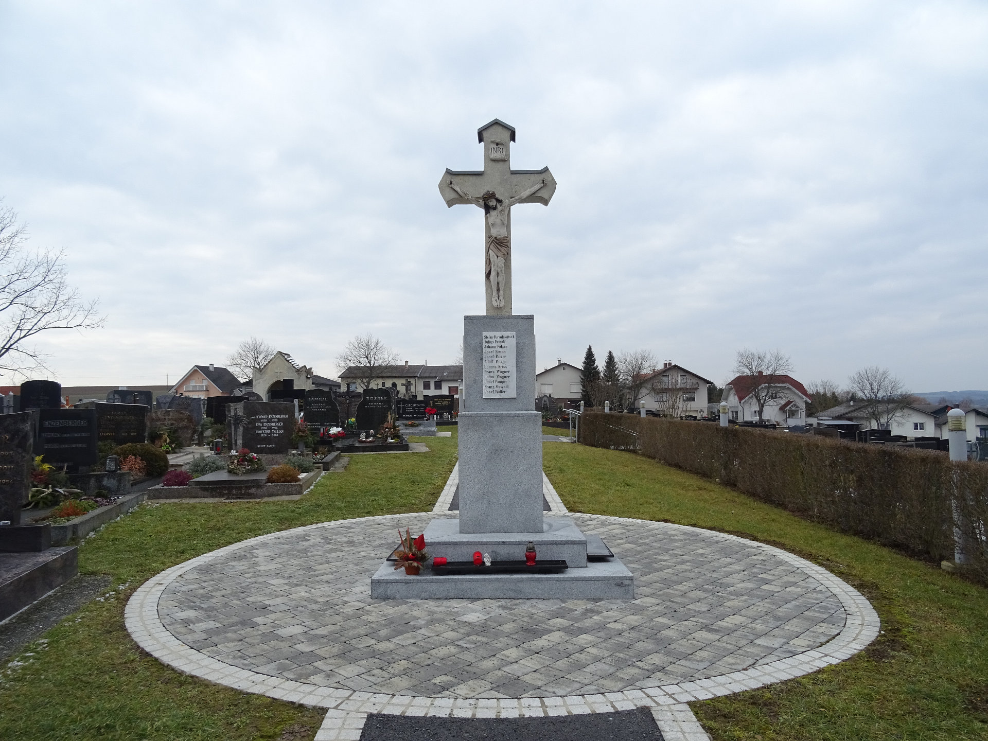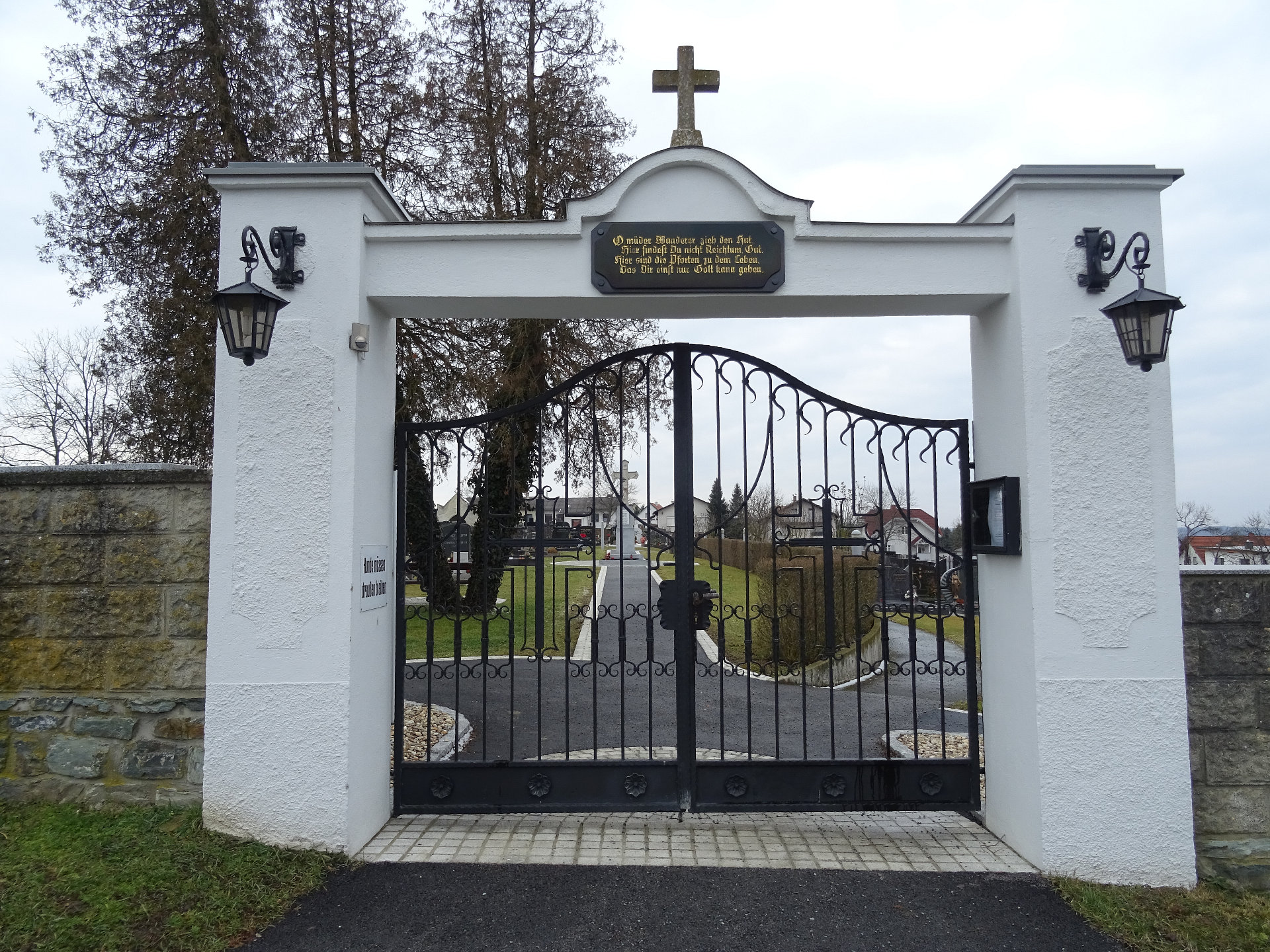 Das Friedhofsportal, das Friedhofskreuz wurde 2015/2016 durch die Firma Naturstein Kalman aus Rotenturm saniert.