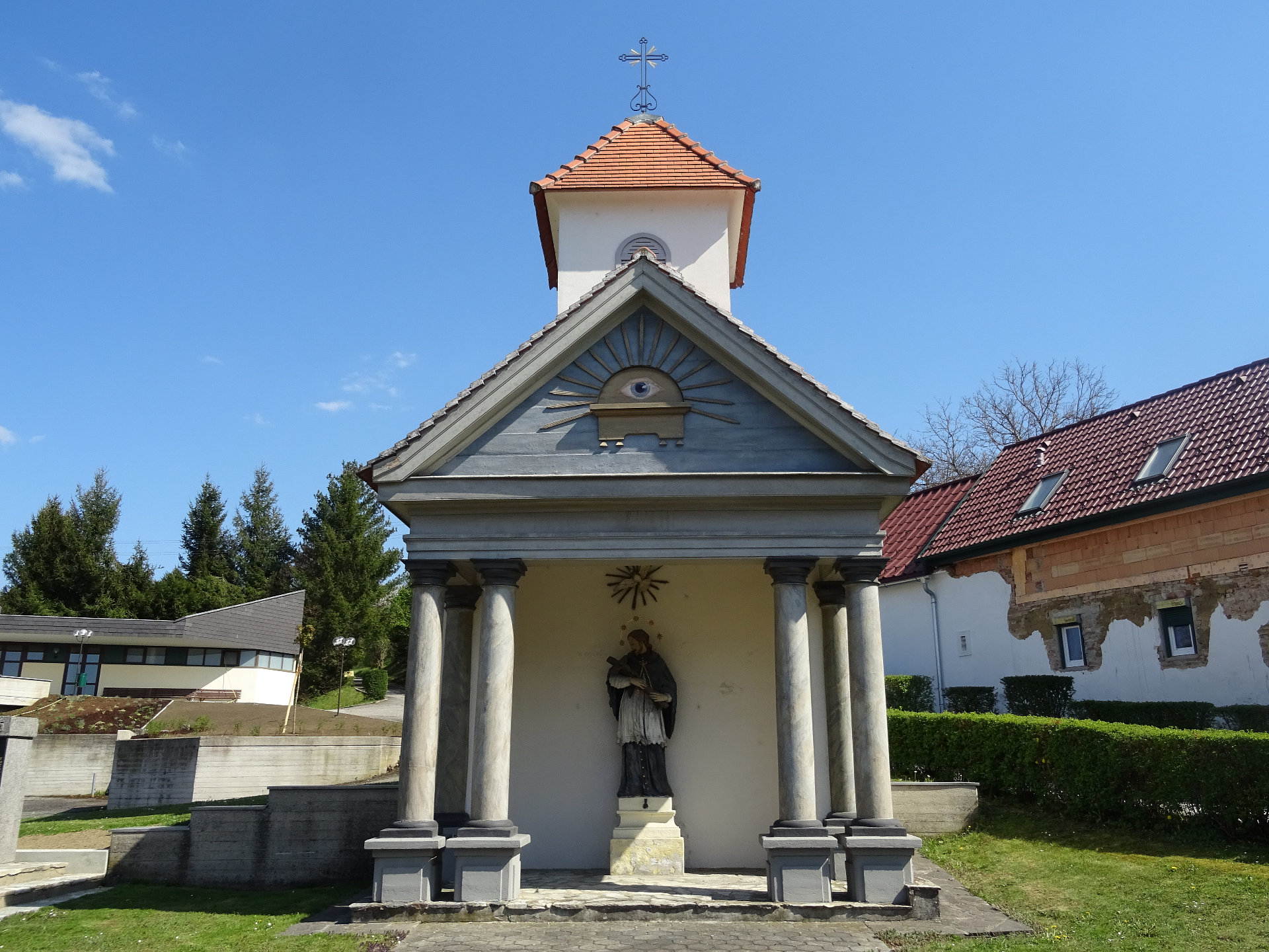 Die Kapelle im Dorf wurde um ca. 1840 erbaut. In der Halle der tempelartig angelegten Kapelle steht die Steinstatue des hl. Johannes v. Nepomuk aus dem 18. Jahrhundert. Hinter der Kapelle wurde ein einfacher Glockenturm dazugebaut. Der Verschönerungsverein und die Marktgemeinde Kohfidisch haben sich Anfang des Jahres 2003 entschlossen, die Johannes Nepomukkapelle im Vorbereich zur Kirche zu sanieren. Die Renovierung erfolgte dann 2004 (Segnung der neu renovierten Kapelle am 16. Mai 2004).Kohfidisch, Kriegerdenkmal