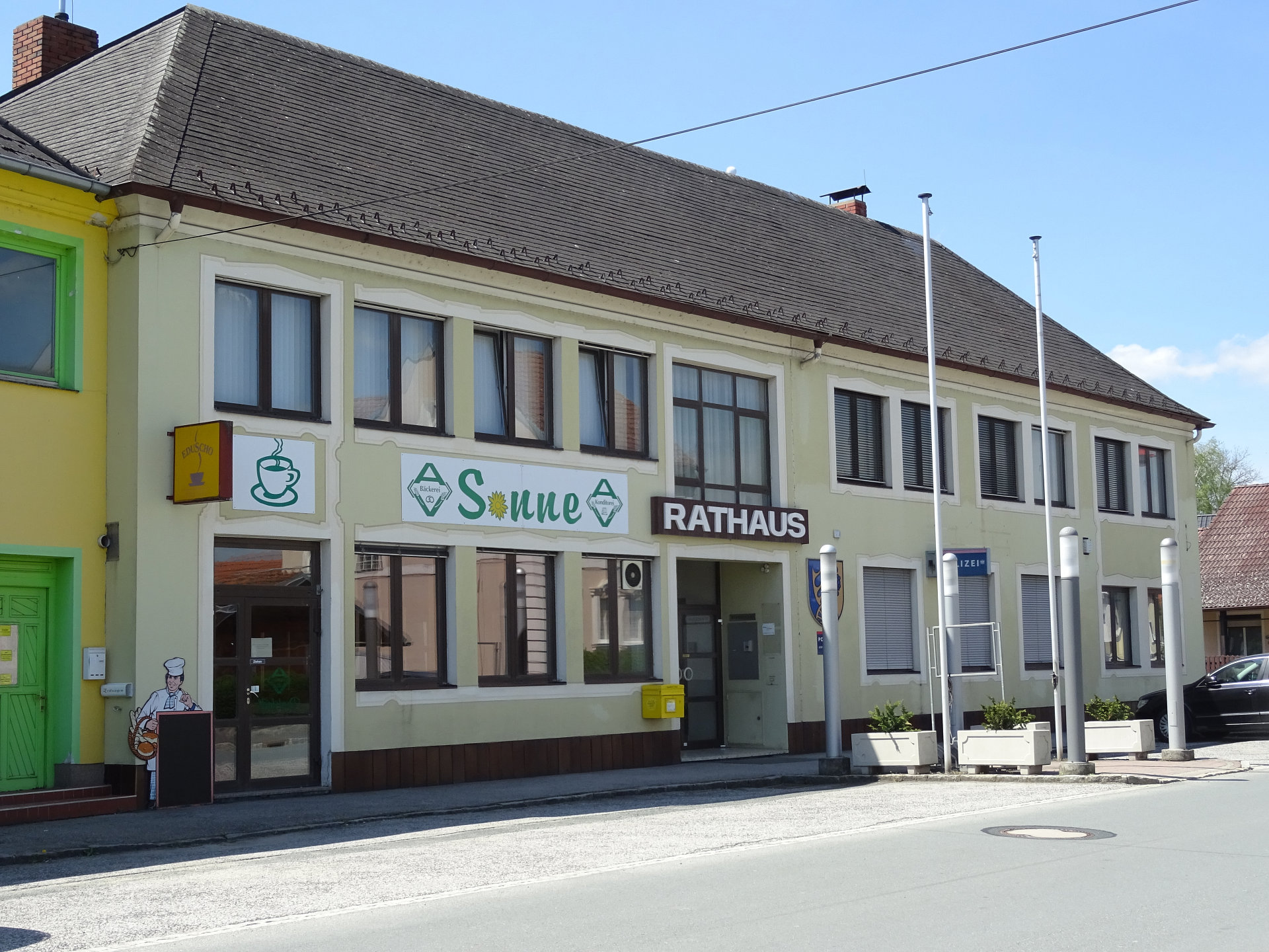 Das Gemeindeamt befindet sich in der Oberen Hauptstraße 4. Das Postamt befindet sich auf der gegenüberliegenden Seite.Kohfidisch, Volksschule