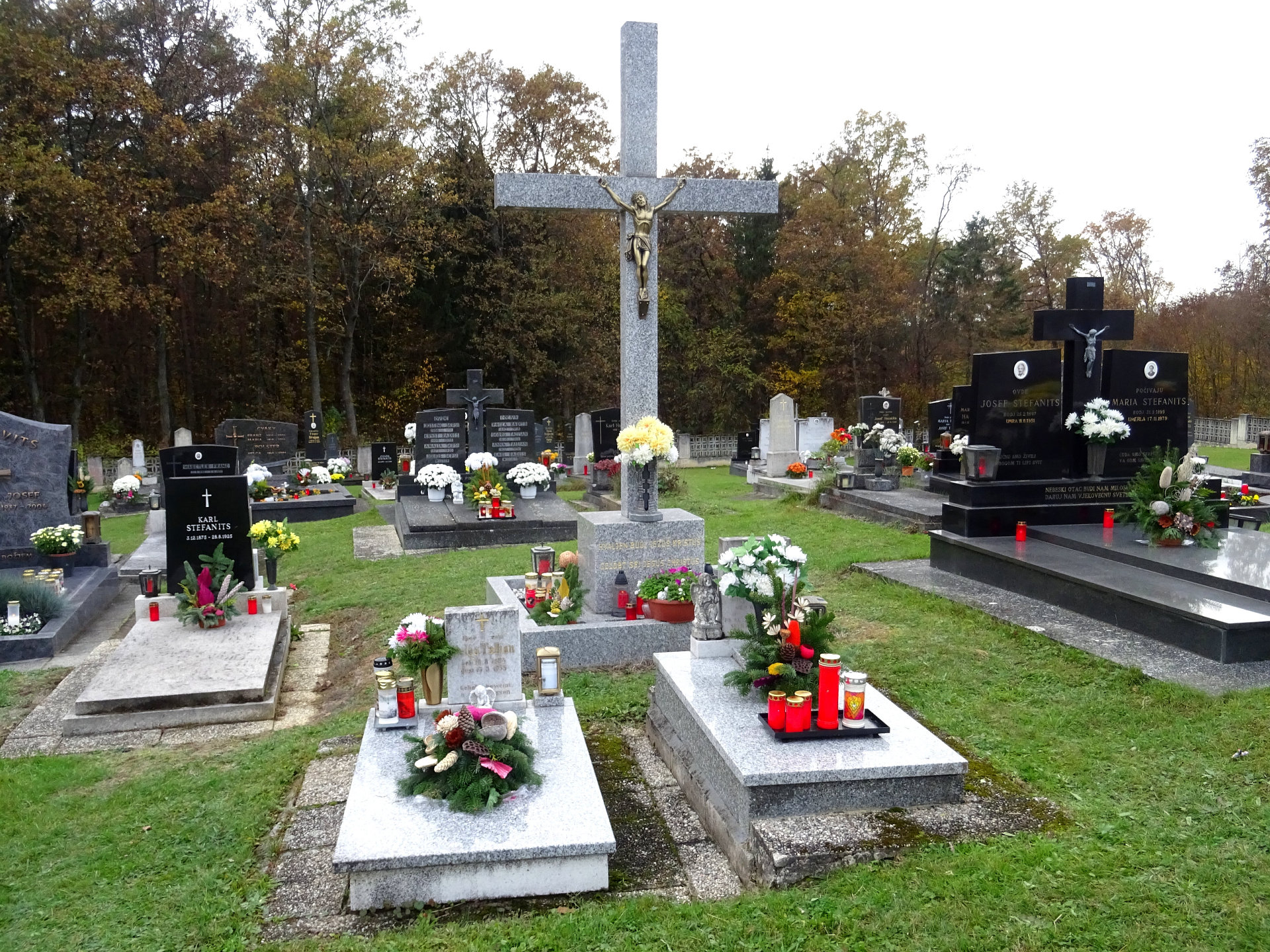 Friedhofskreuz: Das Friedhofskreuz befindet sich in der Mitte des Friedhofes in Spitzzicken. Die Inschrift lautet: "Hvaljen budi Jesus Kristus Gelobt sei Jesus Christus".