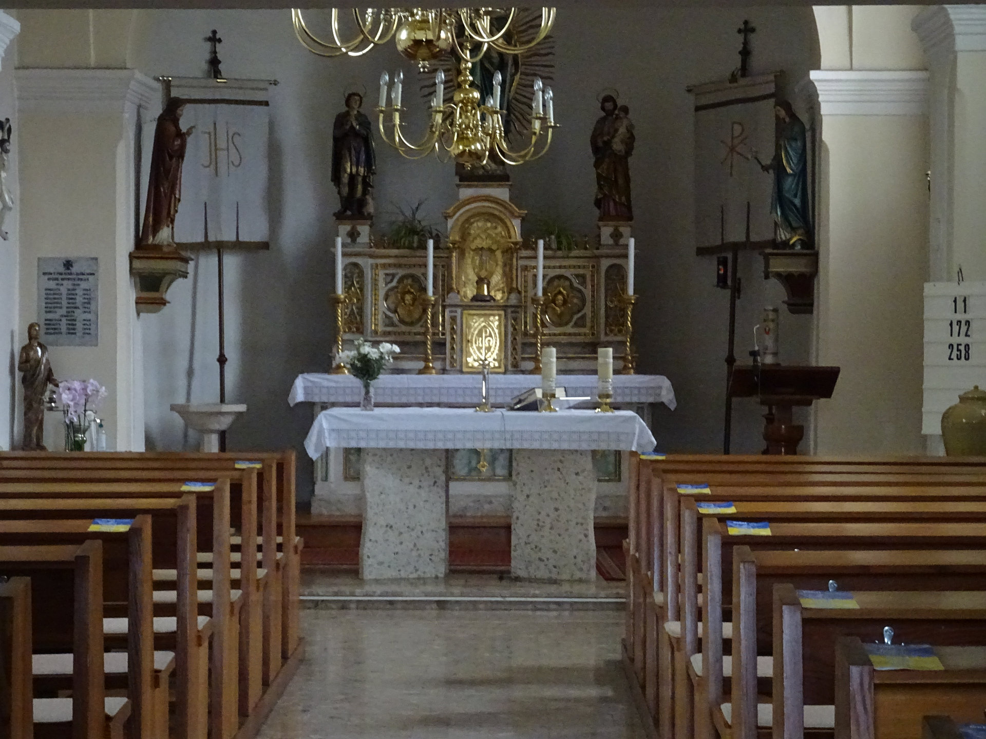 Soldatendenkmal in Spitzzicken. Die Inschrift lautet: Spali su, izgubili su se i pocivaju u miru božjem (Gefallene und Vermisste sie ruhen im Frieden Gottes).Spitzzicken, Kapelle