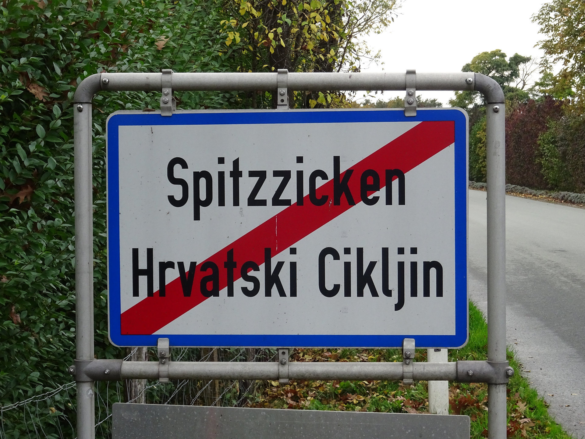 Ortstafel in Spitzzicken.Spitzzicken, Ortstafel