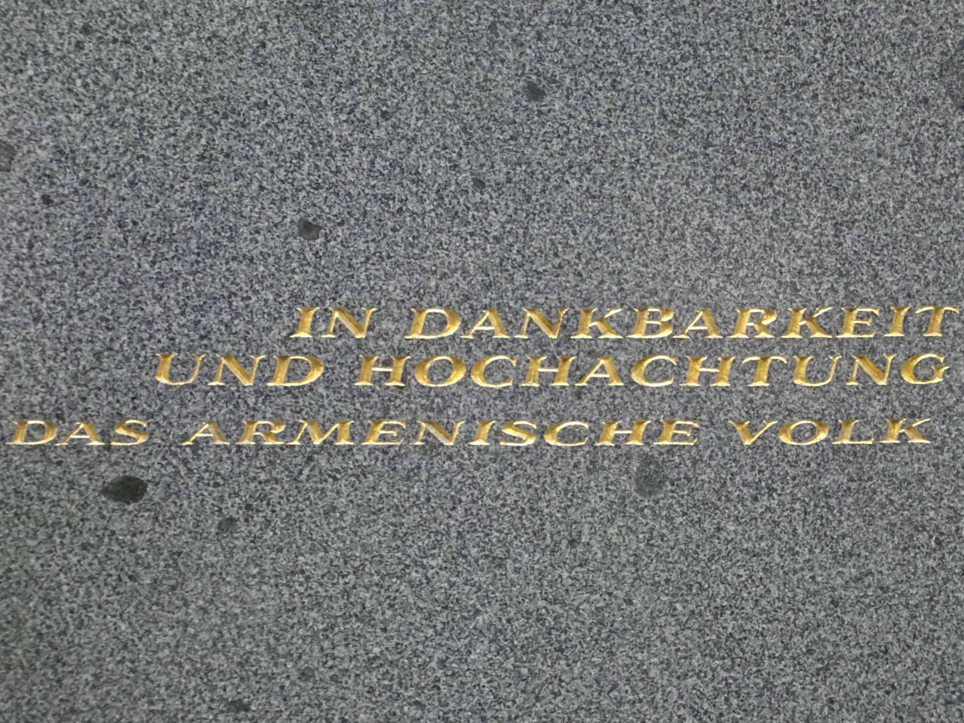 Der Granitpfeiler trägt die Inschrift: "Franz Werfel Prag 1890 - 1945 Beverly Hills - In Dankbarkeit und Hochachtung. Das armenische Volk."