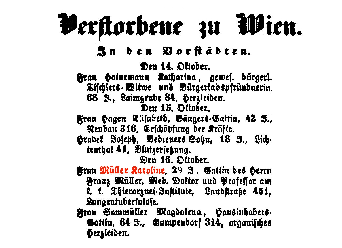 k.k. Rechnungsrath-Gattin, 21.10.1813-27.12.1859, Landstraße 96.