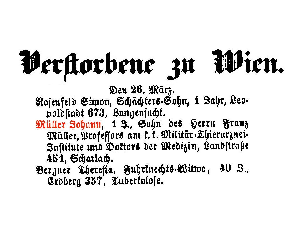 k.k. Official des obersten Gerichtshofes, Leopoldstadt 516, † 25.12.1859 im 37. LJ.