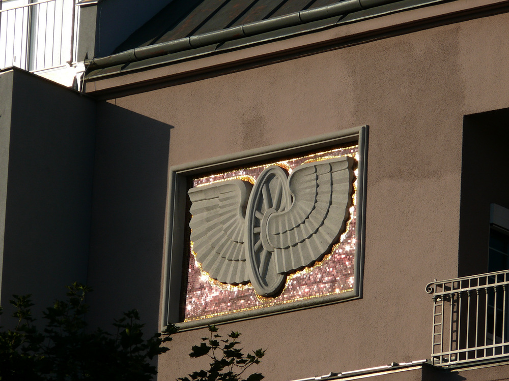 Die Fassaden sind mit den Flügelrädern, dem Symbol der
