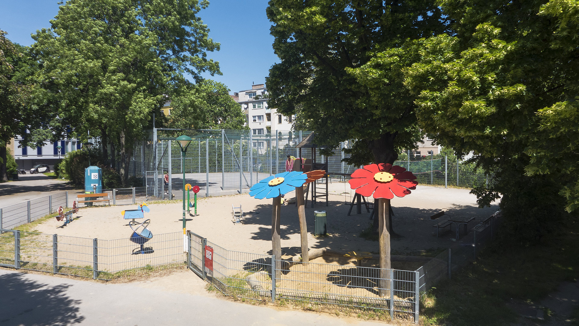 Der Springbrunnen befindet sich im Marie-Schuller-Park im 21. Wiener Gemeindebezirk Floridsdorf.