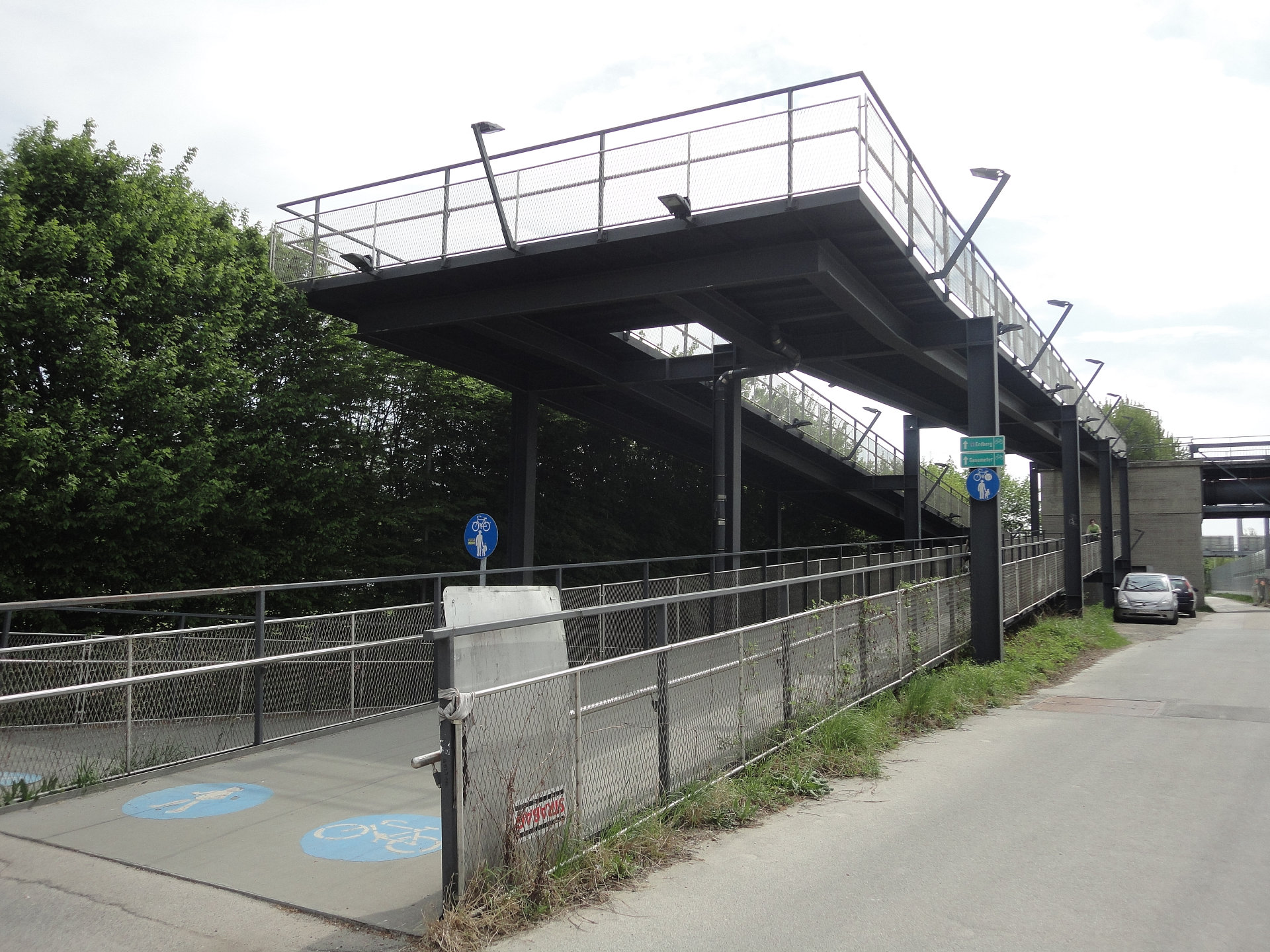 Lage: Der Gaswerksteg liegt in der Nähe des U-Bahnbetriebsbahnhofs Erdberg. Die Verlängerung über die Gleisanlagen des Betriebsbahnhofs wurde 1988 errichtet.