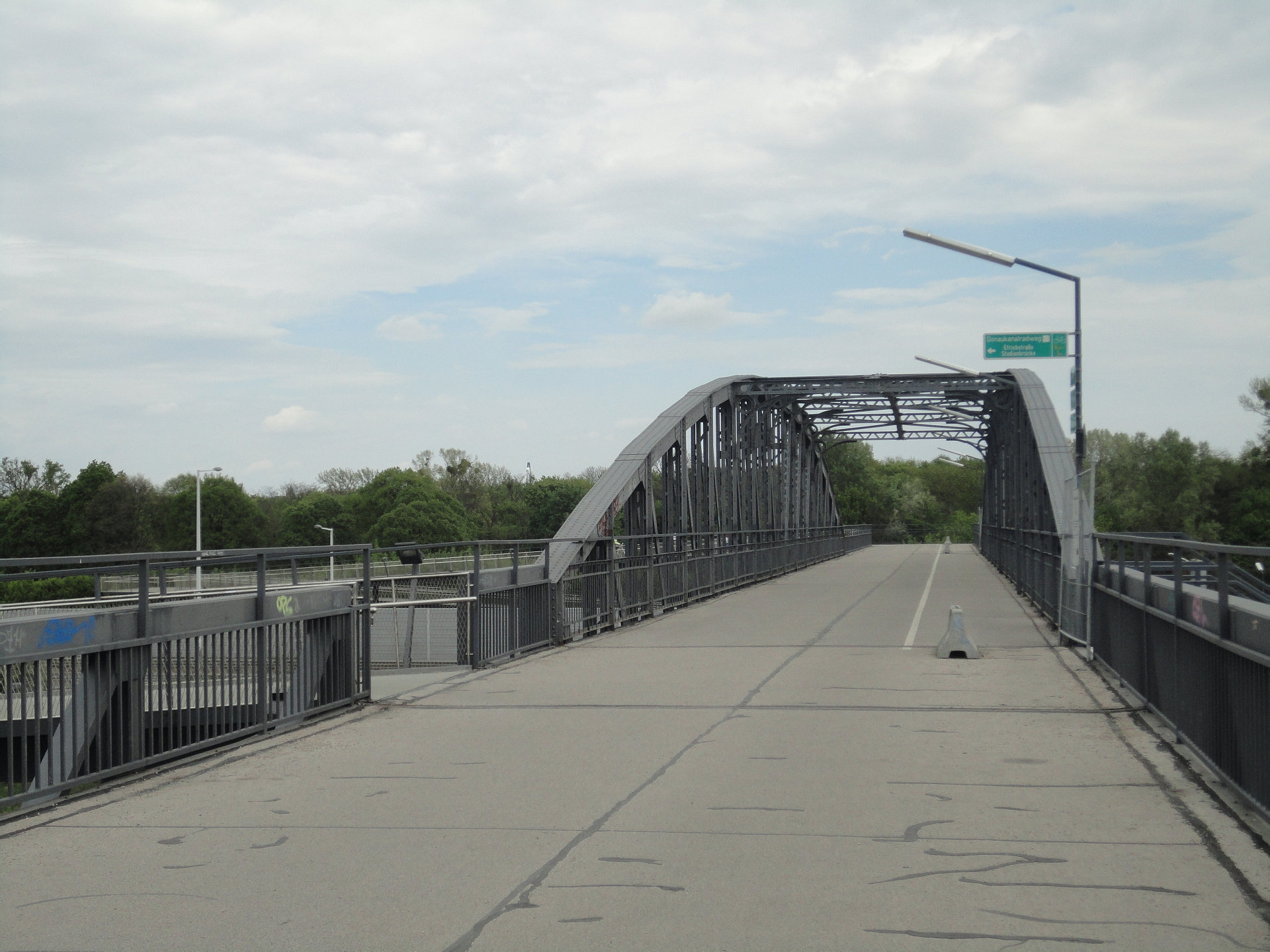 Geschichte: Zwischen dem 25. Juli 1898 und dem 16. Juli 1899 wurde der Gaswerksteg mit 64 Meter Spannweite für das große Gasrohr (später: drei Gasrohre mit je 120 Zentimetern Durchmesser) errichtet, um eine Gasleitung vom städtischen Gaswerk in Simmering in den 2. Wiener Gemeindebezirk zu ermöglichen. Die Halbparabelträger sind an den Enden 3,5 Meter und in der Mitte 8,5 Meter hoch und 6,55 Meter voneinander entfernt.