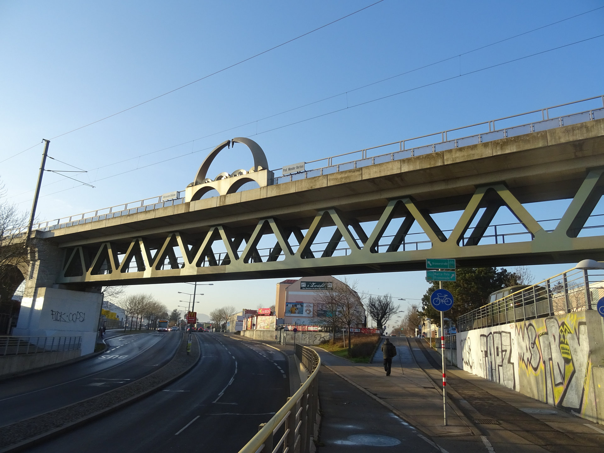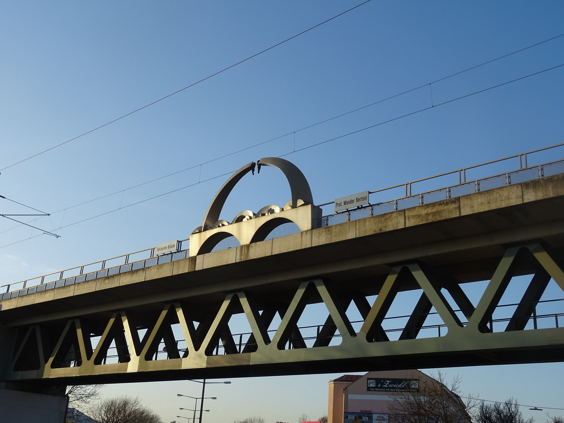Die "Weinende Brücke" mit einem Gewicht von 150 Tonnen befindet sich bei der Schnellbahnstation Siemensstraße, etwa zwischen Kilometer 2,0 und 2,2