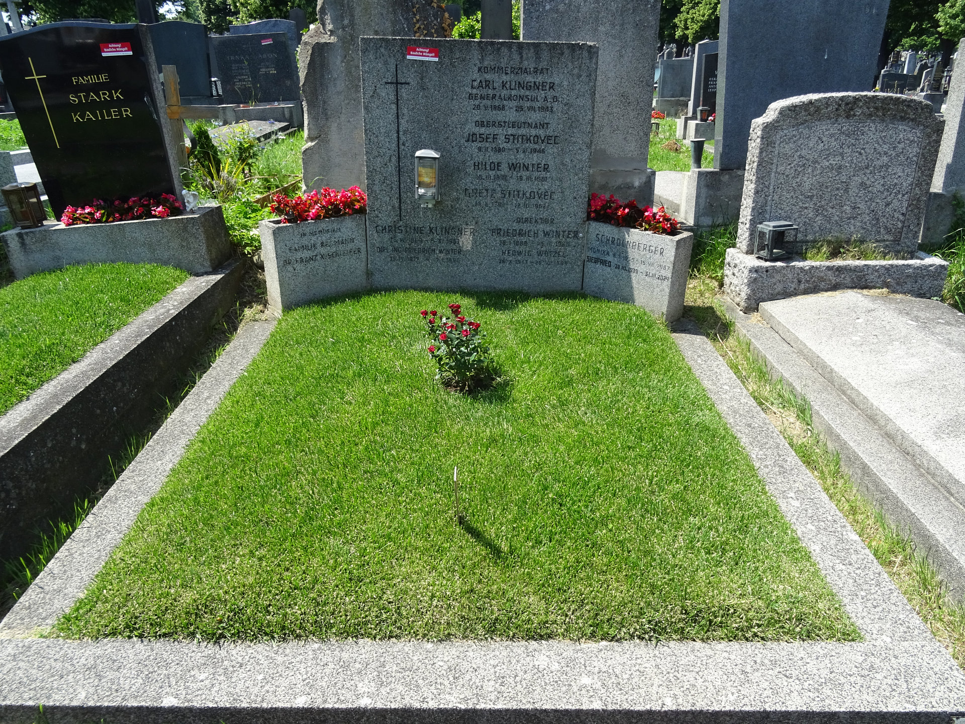 Carl Klingner, Kommerzialrat, Generalkonsul und Generaldirektor a. D., * 20.05.1868, † 25.07.1943, Bestattungsdatum: 29.07.1943,