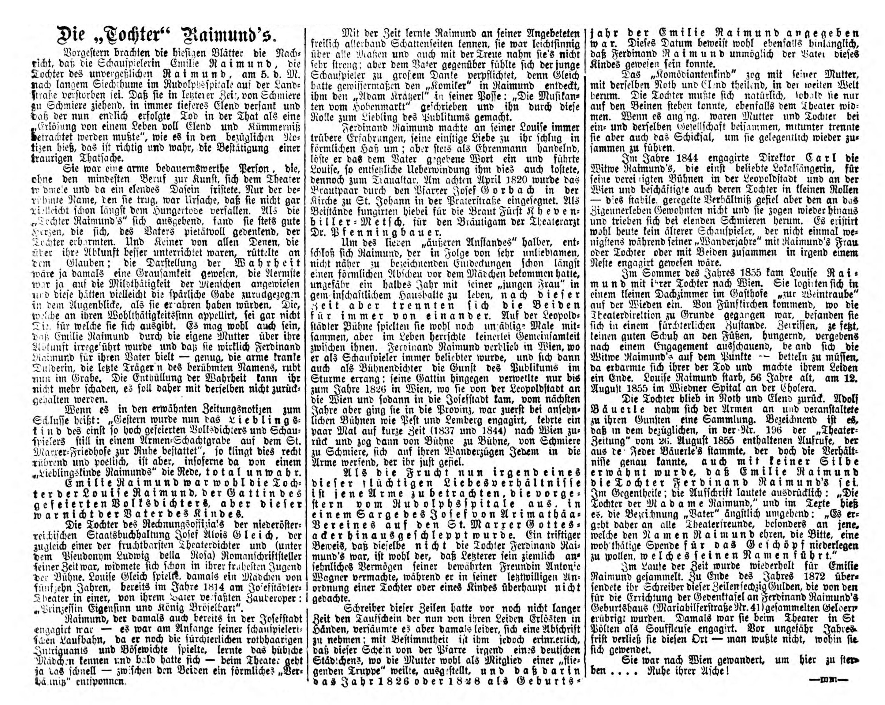 Tochter der Madame Raimund.“ und im Texte hieß
