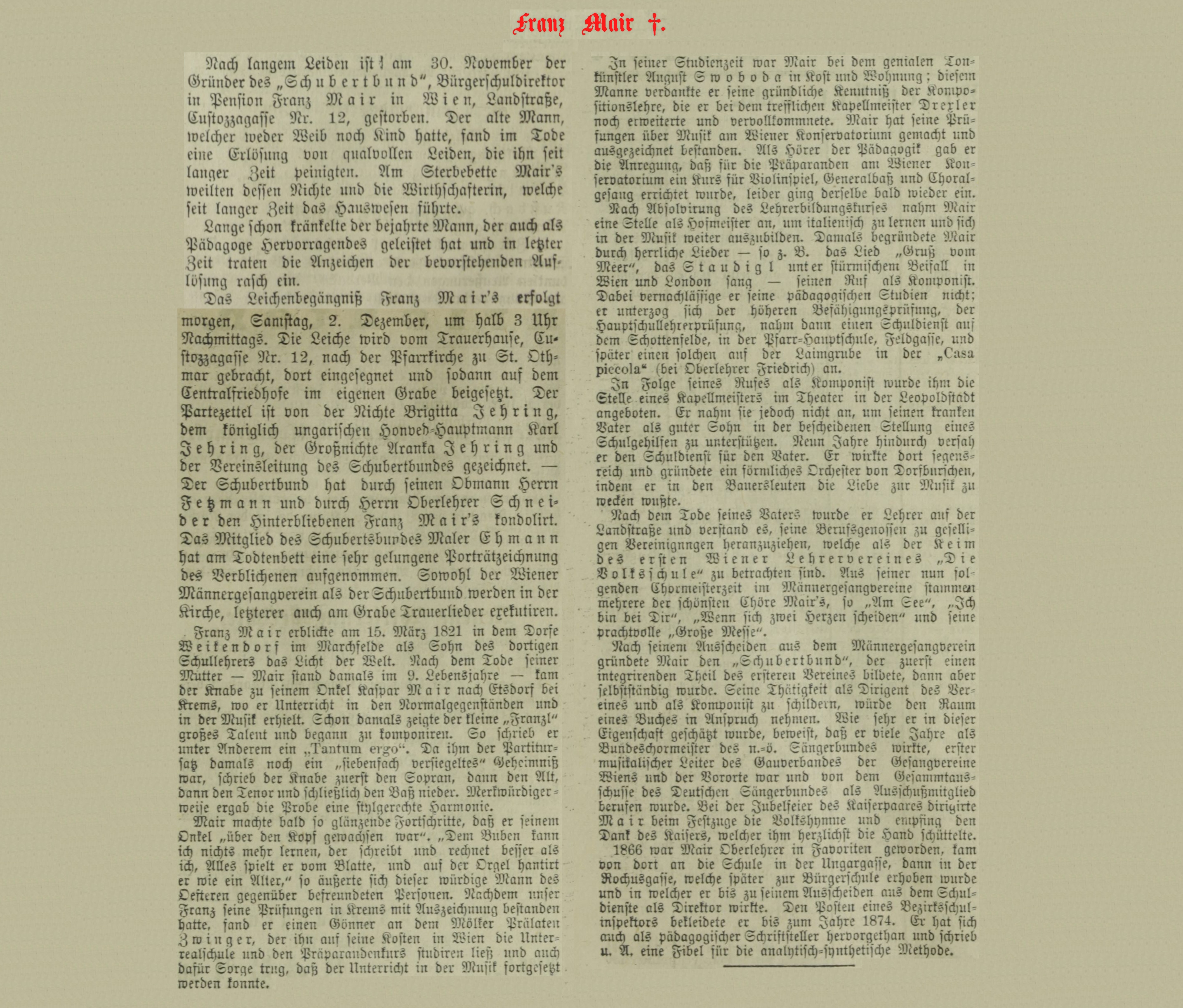 [Franz Mair †.] Unter außerordentlich zahlreicher