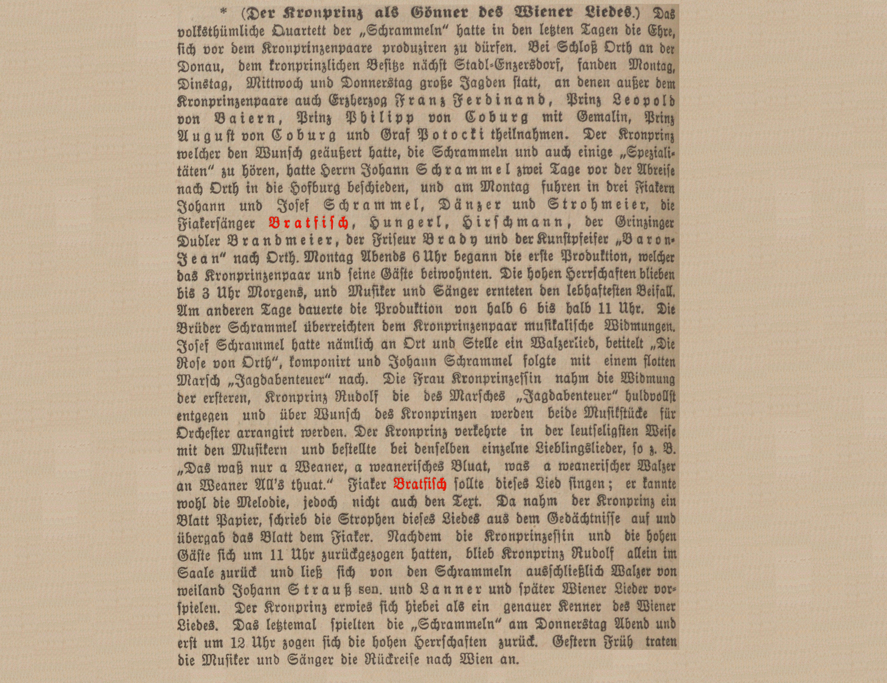 des Kronprinzen Rudolf, Josef Bratfisch, im 66. Lebensjahre