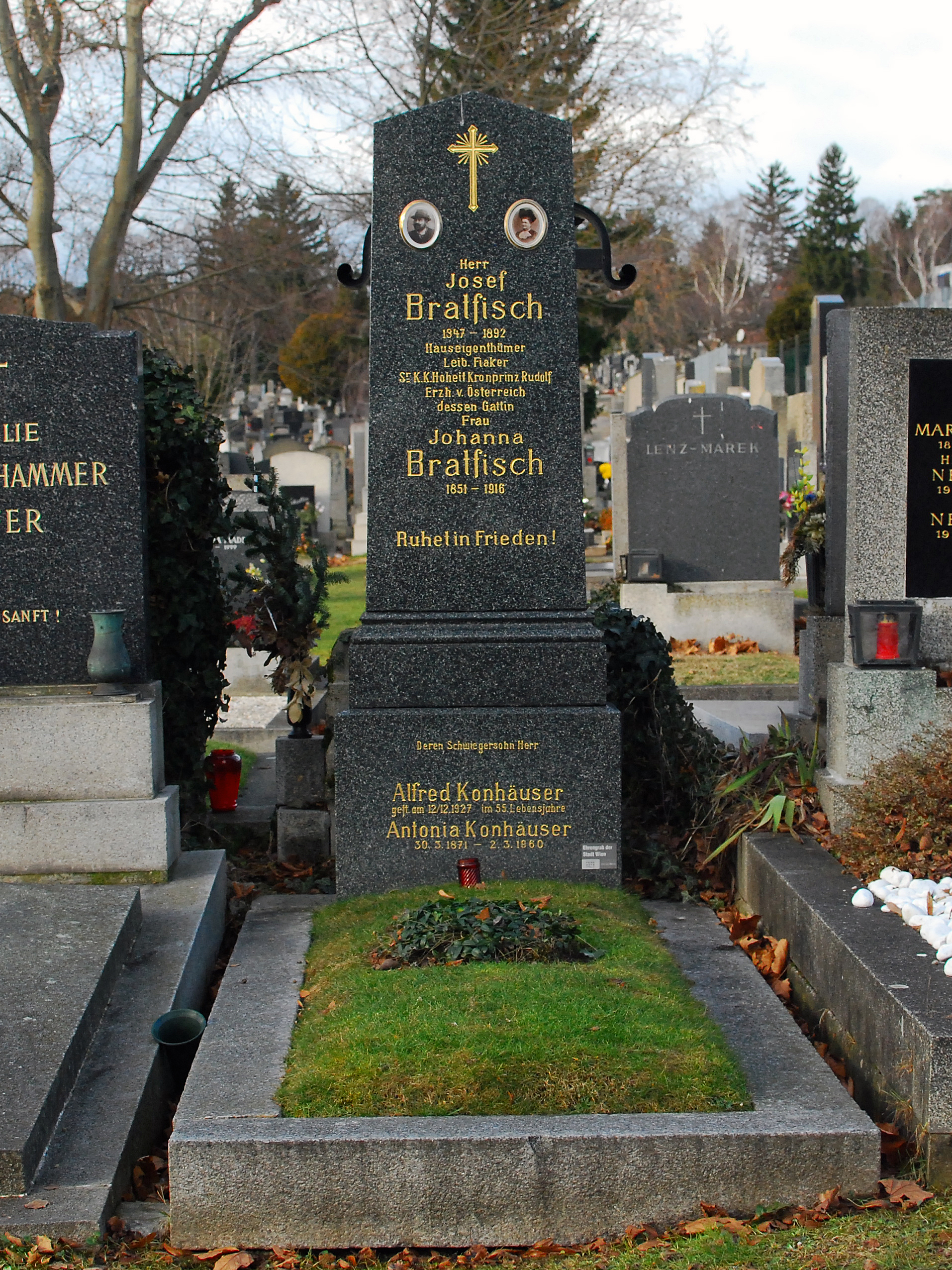 Das ehrenhalber gewidmete Grab von Josef Bratfisch befindet sich auf dem