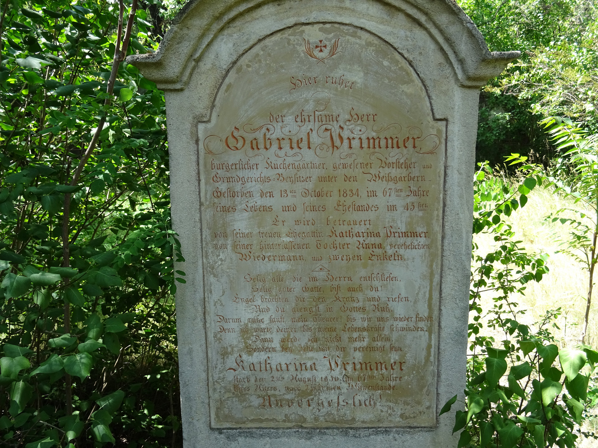 Gabriel Primmer, bürgerl. Küchengärtner und Hausinhaber, Vorsteher und Grundgerichts-Beysitzer unter den Weißgärbern, † 13.10.1834 im 67. LJ.