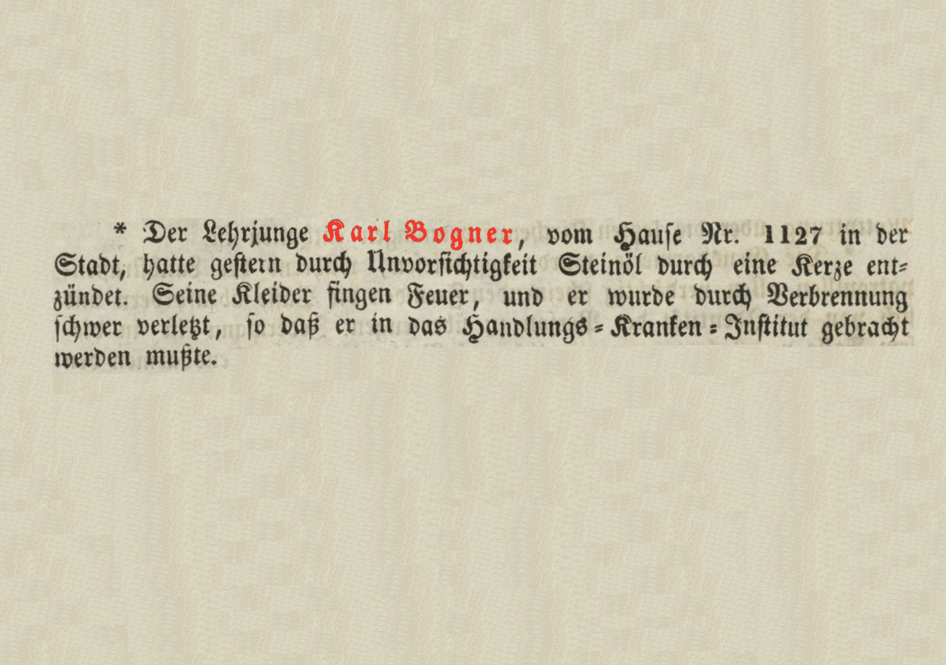 Der Lehrjunge Karl Bogner, vom Hause Nr. 1127 in der